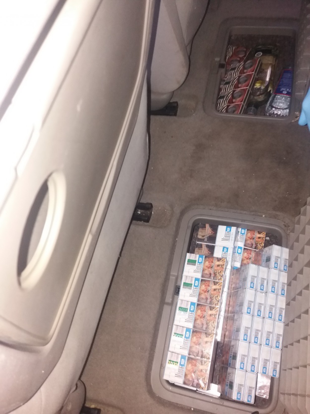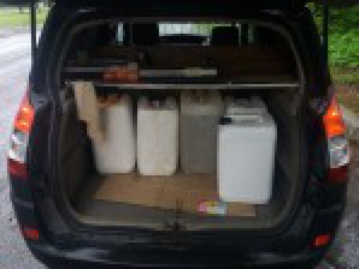 Pasieniečiai „Renault Megane Scenic“ salone bei bagažinėje aptiko 9 plastikines talpas, kuriose buvo apie 113 litrų skaidraus skysčio, skleidžiančio specifinį naminės degtinės kvapą. Taip pat automobilyje buvo 730 pakelių įvairių rūšių cigarečių su Baltarusijos akcizo ženklais.