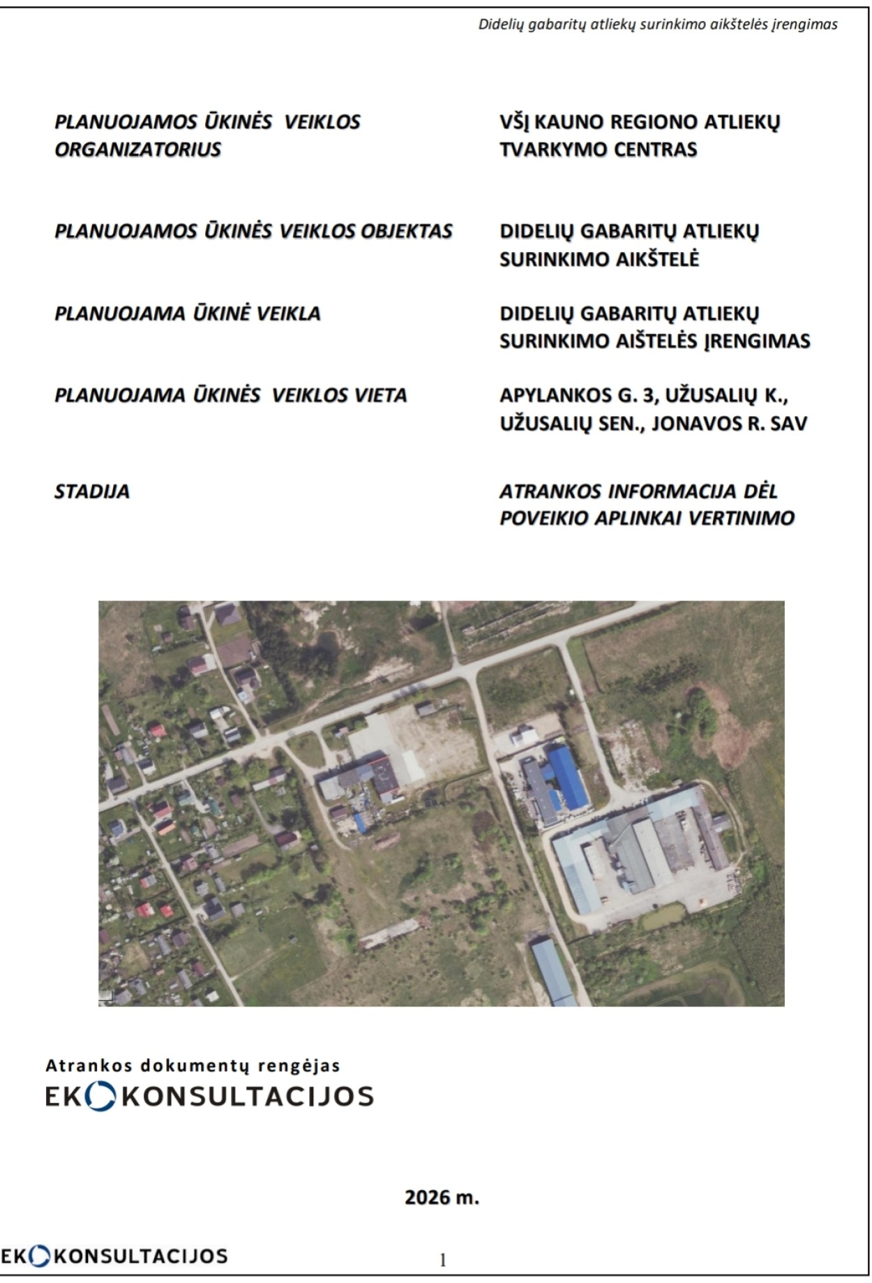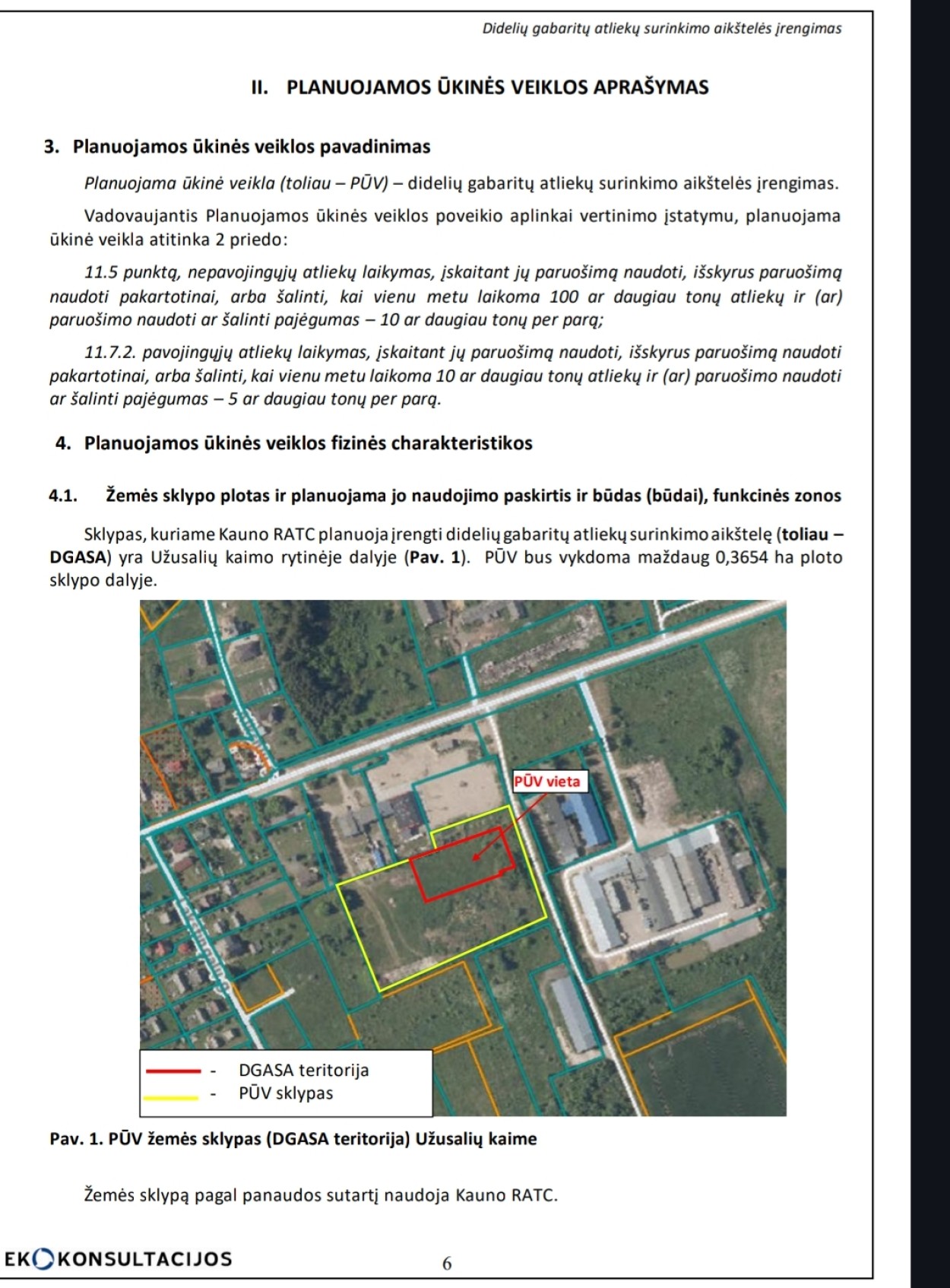 Dokumentuose nurodoma, kad veikla būtų vykdoma maždaug 0,3654 hektaro ploto sklypo dalyje, rytinėje kaimo teritorijoje. Čia planuojama įrengti didelių gabaritų atliekų surinkimo aikštelę, skirtą gyventojų buityje susidarančioms stambioms atliekoms priimti ir tvarkyti.