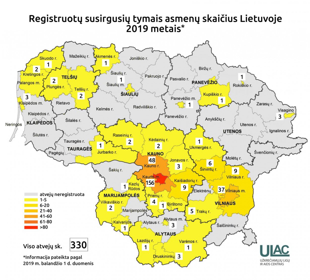 Užkrečiamųjų ligų ir AIDS centro (ULAC) duomenimis, per pastarąsias porą dienų, užregistruota dar 20 naujų tymų atvejų. Iš viso šiemet tymais Lietuvoje susirgo 330 žmonių. Daugiausia susirgimų tymais (156 atvejai) registruota Kauno mieste, 48 atvejai – Kauno rajone ir 47 atvejai – Vilniaus mieste. Jonavos rajone registruoti trys susirgimų tymais atvejai. Savaitgalį susirgo trys vaikai, likusieji nauji susirgimai registruoti tarp suaugusiųjų. Iš viso tymai diagnozuoti 251 suaugusiajam ir 79 vaikams. Pagal amžių jauniausias, susirgęs tymais - 7 mėnesių kūdikis, vyriausias – 78 metų asmuo.