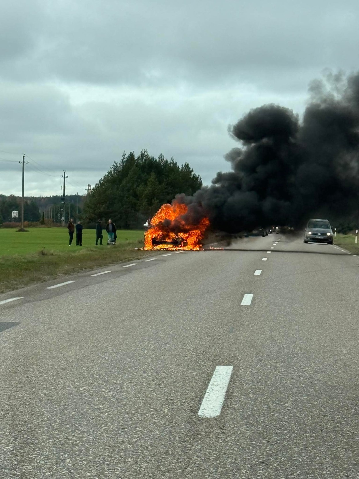 Lapkričio 1-ąją, apie 14 valandą Jonavos rajone, netoli Gegužinės, atvira ugnimi liepsnojo lengvasis automobilis. Į įvykio vietą buvo iškviestos kelios ugniagesių gelbėtojų komandos.