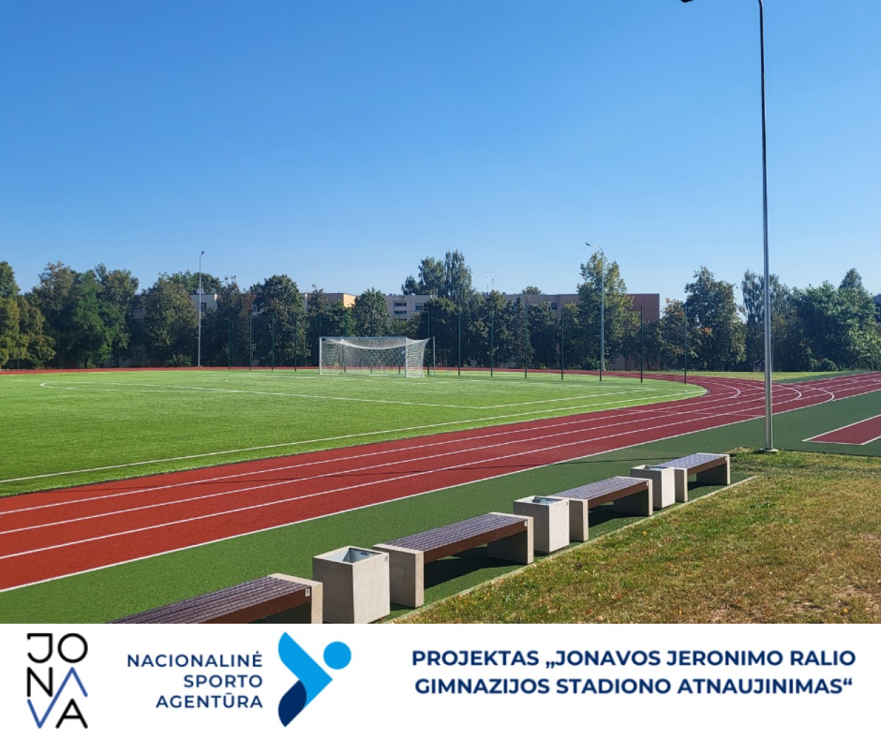 Jonavos rajono savivaldybės administracija baigia įgyvendinti projektą „Jonavos Jeronimo Ralio gimnazijos stadiono atnaujinimas“ Nr. NSA-SI-2024-0028, kurio tikslas – sudaryti šiuolaikinius reikalavimus atitinkančias sportavimo sąlygas Jonavos Jeronimo Ralio gimnazijos stadione, siekiant ugdyti fiziškai aktyvią Jonavos miesto bendruomenę. Įgyvendinant iškeltą tikslą buvo atnaujinta Jonavos Jeronimo Ralio gimnazijos stadiono futbolo aikštė, bėgimo takai, šuolio į tolį sektorius, gimnastikos treniruoklių aikštelė. Šiuo metu atliekamos statybos darbų užbaigimo procedūros.