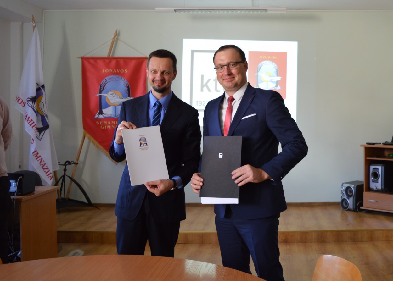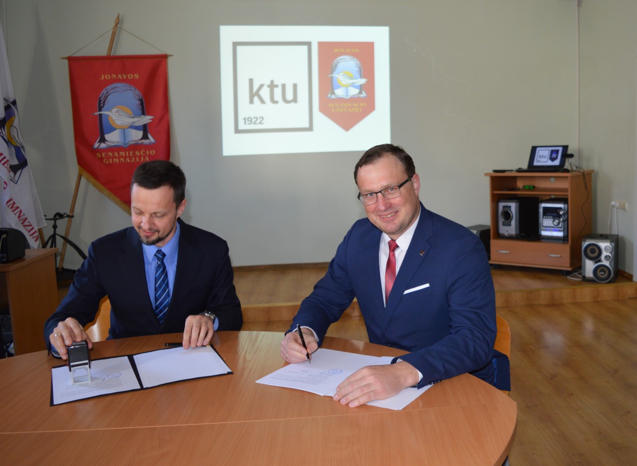 Šią puikią naujieną pristato Jonavos Senamiesčio gimnazija - kovo 18 dieną gimnazijos direktorius Darius Mockus ir Kauno technologijos universiteto atstovas Cheminės technologijos fakulteto dekanas prof. dr. Kęstutis Baltakys pasirašė bendradarbiavimo sutartį. Jau nuo kitų mokslo metų pasirinkę mokytis ,,KTU klasėje” gimnazistai galės naudotis Kauno technologijos universiteto mokymo baze, stiprinti praktinius įgūdžius laboratorijoje, bus kviečiami dalyvauti Universiteto rengiamose konferencijose, olimpiadose, konkursuose ir kituose renginiuose. Ypač gabūs ir planuojantys dalyvauti Tarptautinėse olimpiadose mokiniai galės gilinti žinias, o teorinių ir praktinių įgūdžių įgyti stovyklose Universitete. ,,KTU klasės” abiturientai galės rengti brandos darbus universitete: jiems bus prieinama KTU bibliotekose ir mokslo bazėse sukaupta mokslinė literatūra, o darbų vadovai - konsultantai padės suplanuoti ir atlikti praktikos darbus Universiteto laboratorijose. Abiturientai, išklausę visą kursą ir atlikę praktines užduotis, gaus Universiteto ir Gimnazijos jungtinį pažymėjimą.