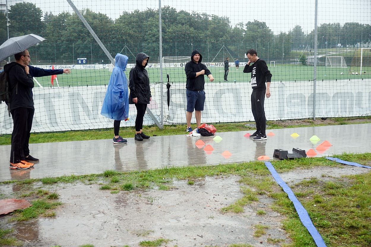Lietuje išmirkę rutulio stūmimo dalyviai po apšilimo stūmimų turėjo šešis bandymus geriausiam rezultatui užfiksuoti. Geriausiu metimu 10,86 metrų nustūmęs Žilvinas Radzevičius tapo šios rungties čempionu, antras liko – Raimondas Baltrukėnas, rutulį nustūmęs 9,26 metrų.