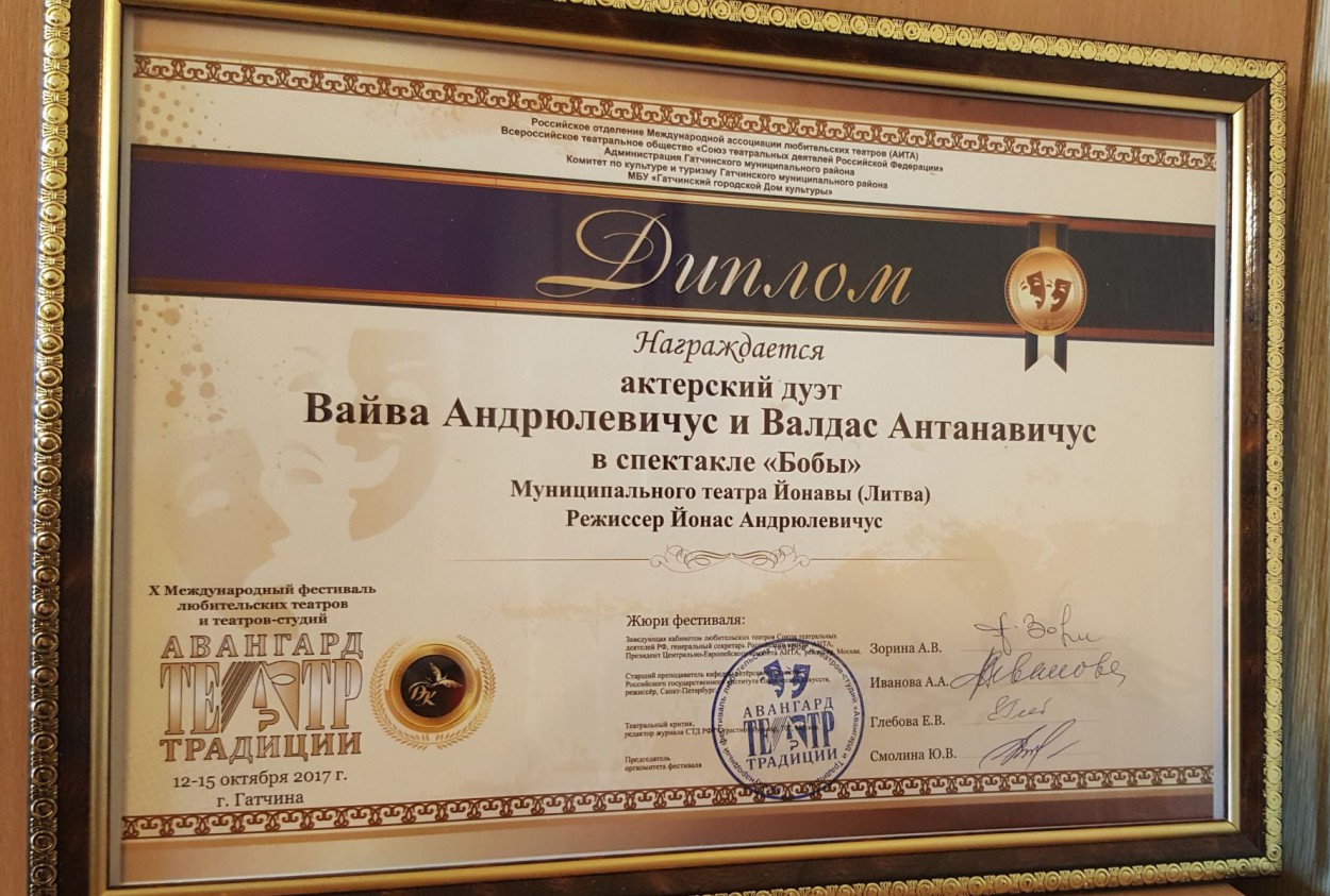 Jonavos rajono savivaldybės teatras spalio 12-15 dienomis dalyvavo tarptautiniame mėgėjų teatrų festivalyje „Avangardas ir tradicijos“ Gatčine (Leningrado sr., Rusija). Tarp įvairaus žanro spektaklių, kuriuos festivalio metu rodė teatrai iš Latvijos, didžiųjų Rusijos miestų bei autonominių respublikų (Karelijos, Komių ir kt.), jonaviečių vaidintos D. Čepauskaitės „Pupos“ (rež. Jonas Andriulevičius) išsiskyrė itin teigiamais ekspertų vertinimais bei žiūrovų simpatijomis.