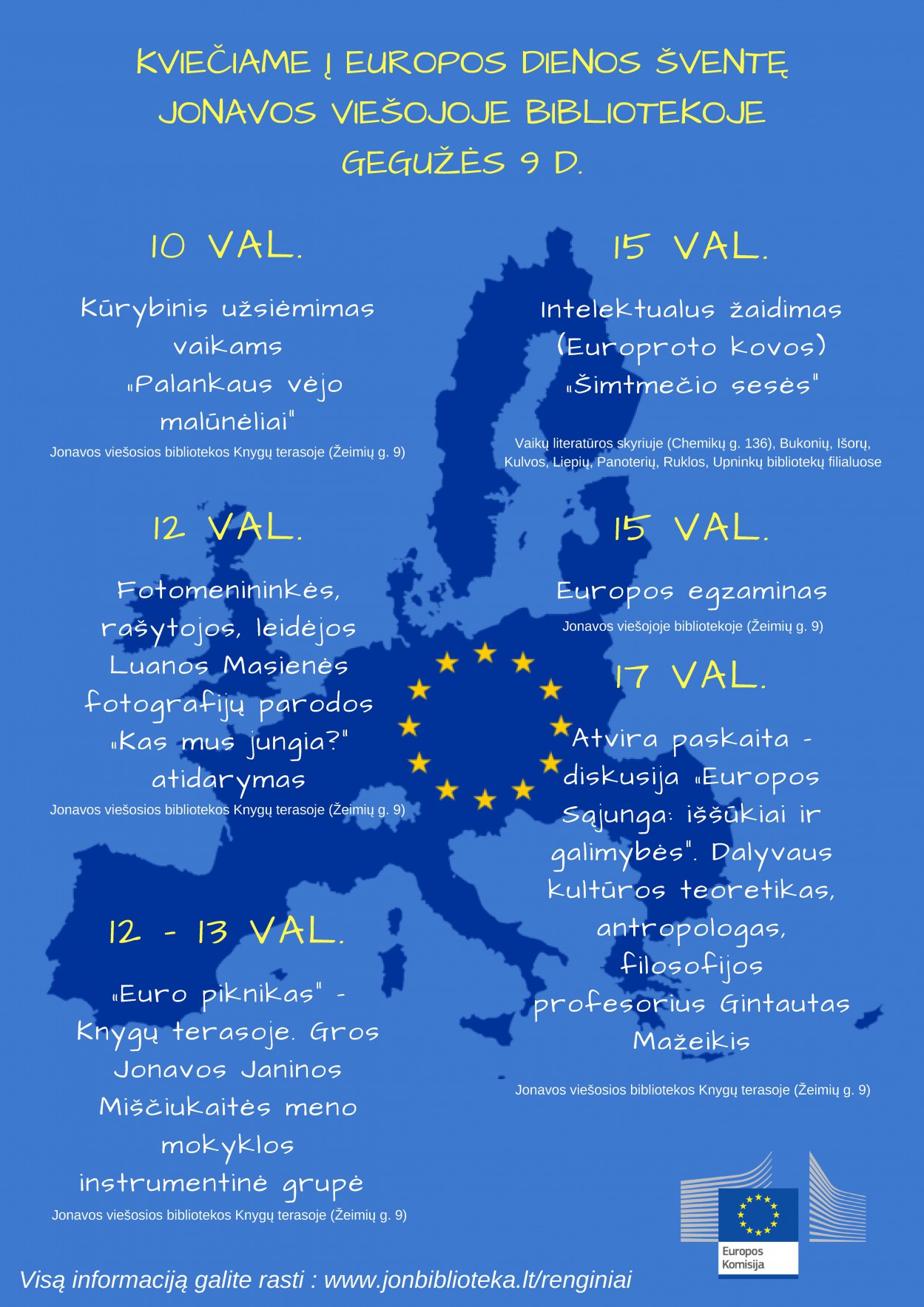 KVIEČIAME GEGUŽĖS 9 D. KARTU PRALEISTI EUROPOS DIENĄ, DALYVAUKITE RENGINIUOSE: