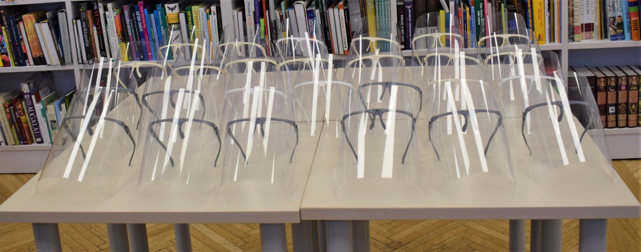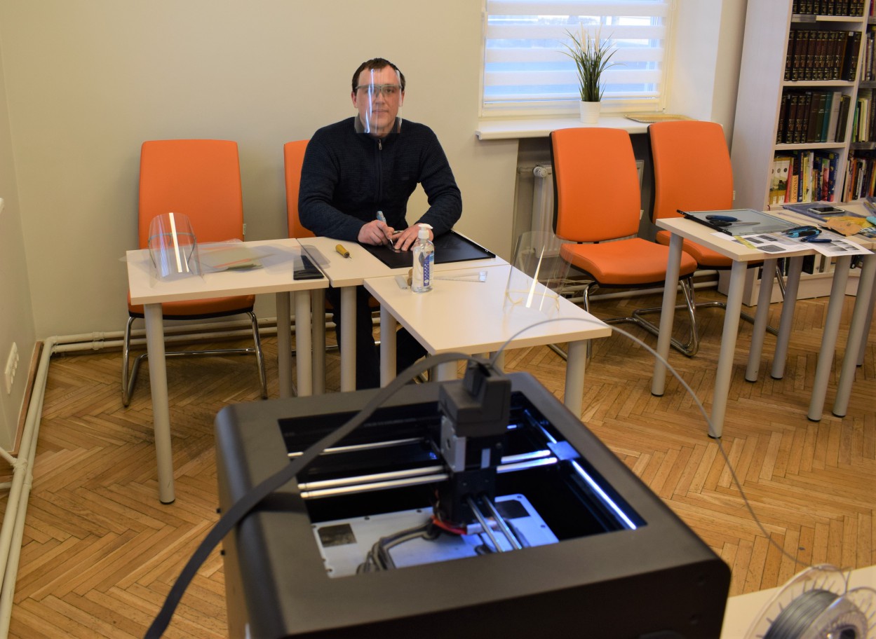 Apsauginių skydų dizainą sukūrė Robotikos mokykla kartu su savanorių ir bendrovės „3DCreative“ komanda. Lietuvos nacionalinė biblioteka, įgyvendindama projektą „Gyventojų skatinimas išmaniai naudotis internetu atnaujintoje viešosios interneto prieigos infrastruktūroje“ (VIPT), didžiosioms šalies viešosioms bibliotekoms 2019–2020 m. yra nupirkusi 58 naujus 3D spausdintuvus.