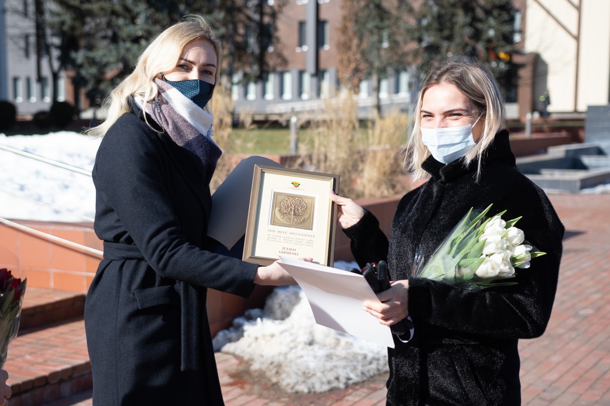 Biuro specialistėms įteikti Jonavos rajono mero padėkos raštai, o specialistei Julijai Giršienei perduotas ir Savivaldybių visuomenės sveikatos biurų asociacijos įsteigtas apdovanojimas „2020 m. specialistui“.