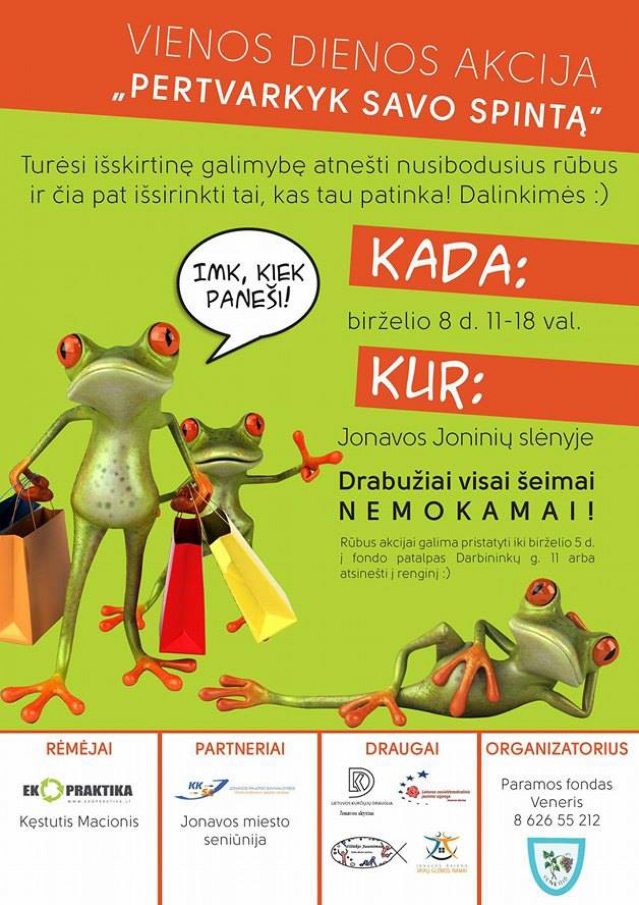 Drabužius akcijai galima pristatyti ir iš anksto (iki birželio 5 d.) adresu Darbininkų g. 11. Tel.: +370 626 55212.