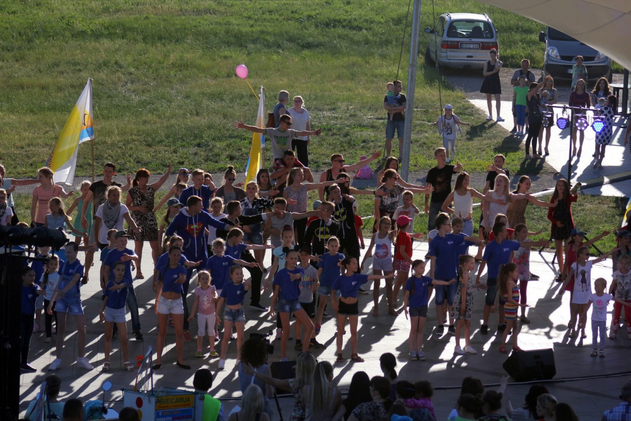 Prieš prasidedant vakariniam koncertui slėnyje susirinkę jonaviečiai buvo pakviesti į bendrą šokį – „fleshmobą“.