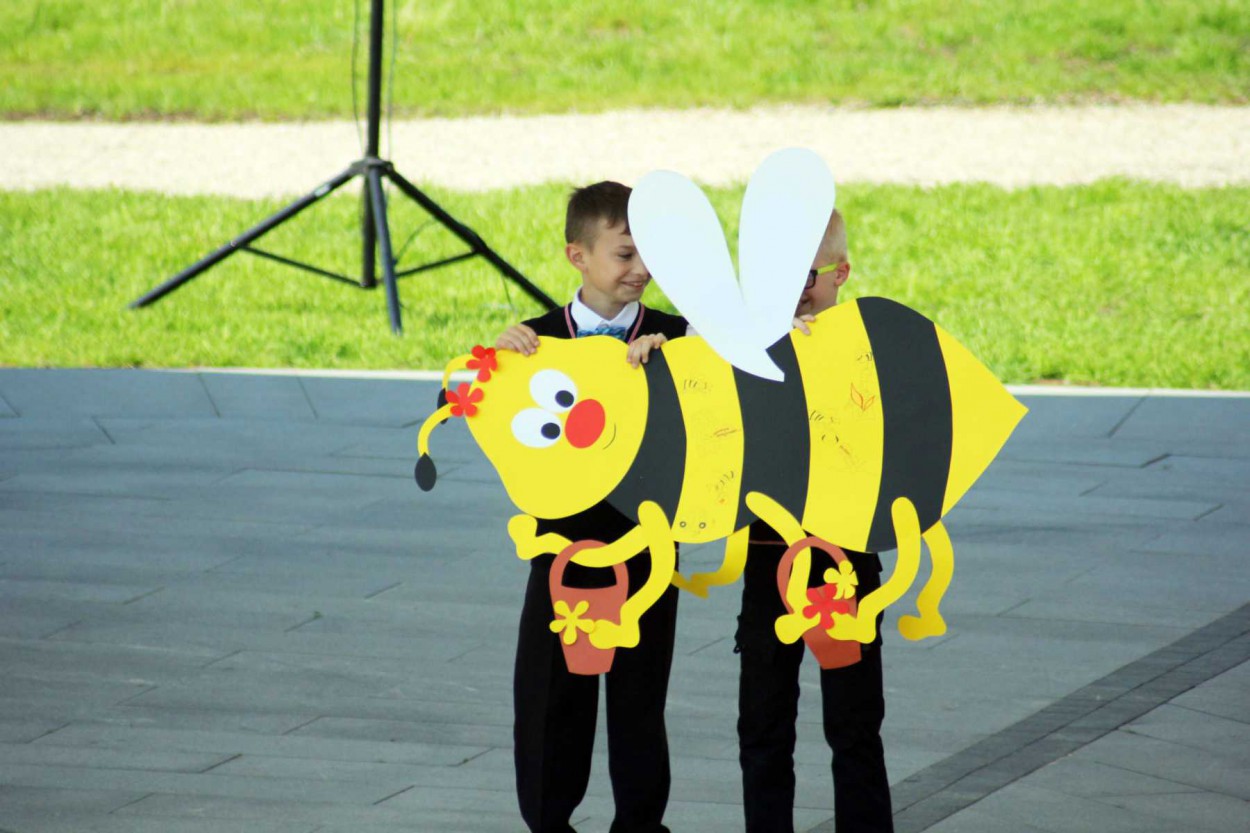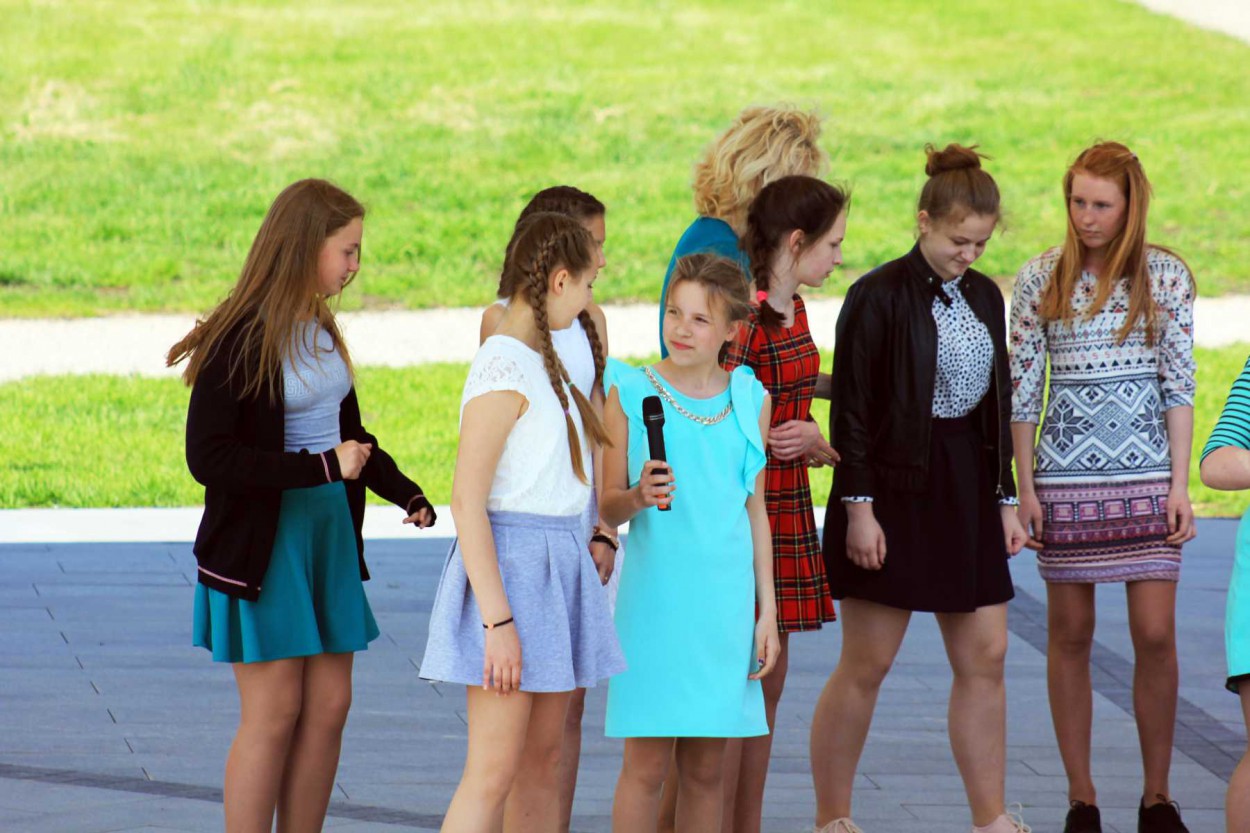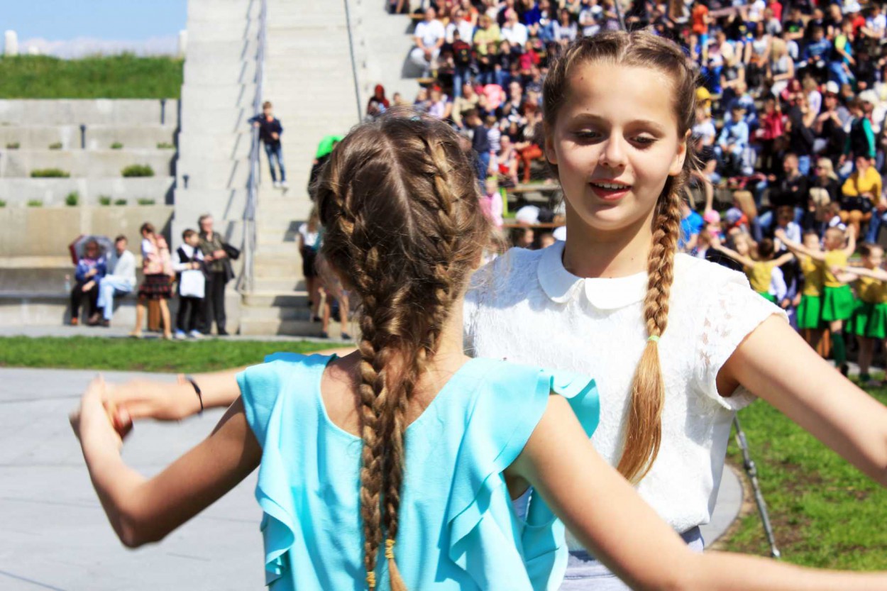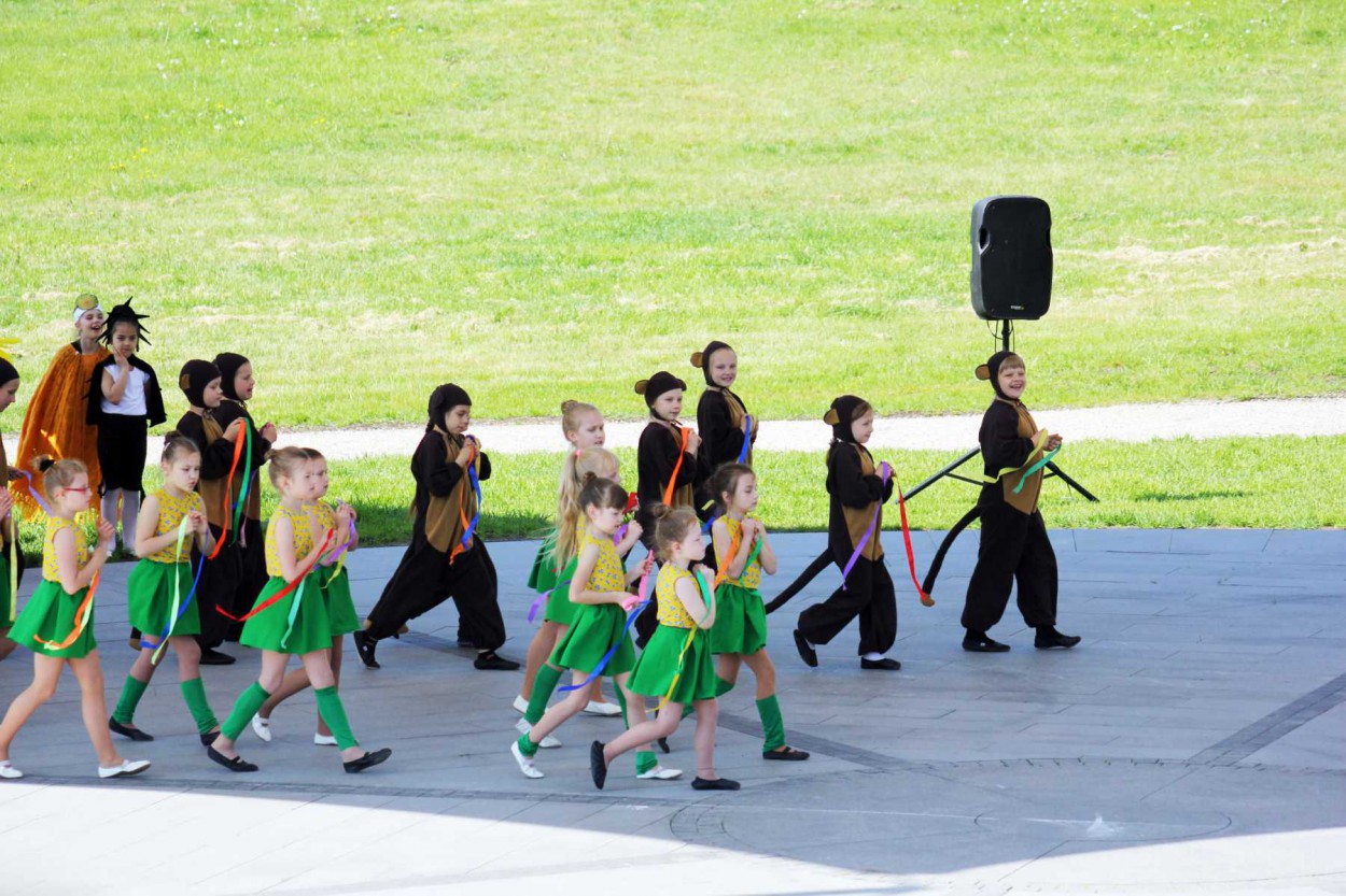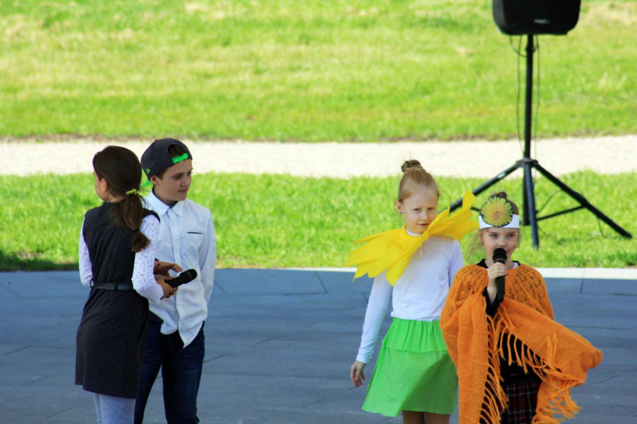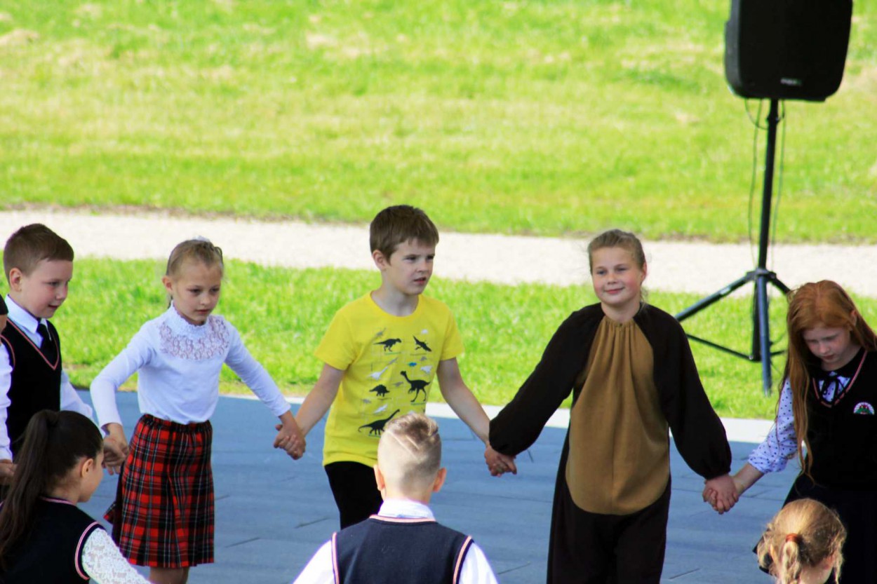 Ilgiau nei savaitę mokykloje repetavę vaikai šiandien šoko, grojo, dainavo ir vaidino - Joninių slėnyje surengta Tarptautinei šeimos dienai skirta šventė.