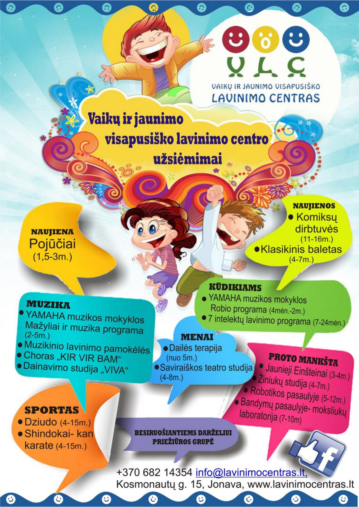 Daugiau informacijos www.lavinimocentras.lt ir FB Vaikų ir jaunimo visapusiško lavinimo centras Jonava