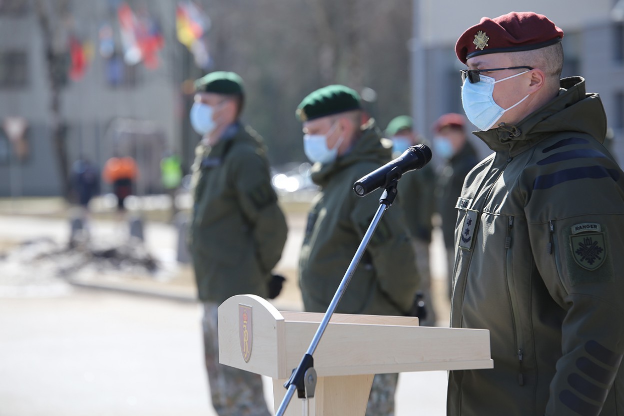 Prisiekusių karių vardu teisė bučiuoti kovinę vėliavą suteikta j. eil. Matui Buivydui. Šis karys pasižymėjo kaip motyvuotas, profesionaliai einantis savo pareigas, atsakingas ir savo draugams padedantis jaunuolis.