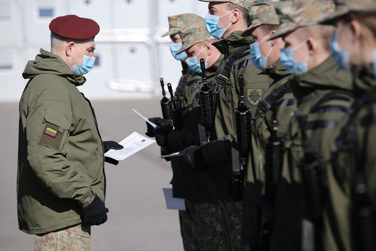 Krašto apsaugos savanorių pajėgų Vyčio apygardos 5-osios rinktinės vadas plk. ltn. Vidas Zabiela pasveikino prisiekusius ir sėkmingai baigusius Bazinio kario savanorio įgūdžių kursą. Taip pat tradiciškai įteikė atminimo dovaną geriausiam kurso kariui savanoriui j. eil. Matui Buivydui, o du geriausiai kursą baigę kariai savanoriai buvo apdovanoti Mokomojo pulko vado padėkos raštais.