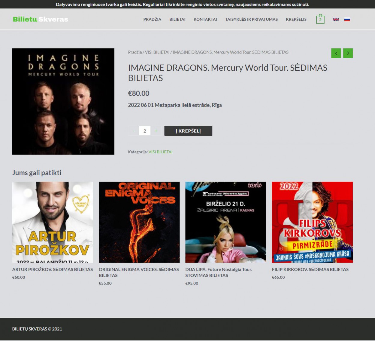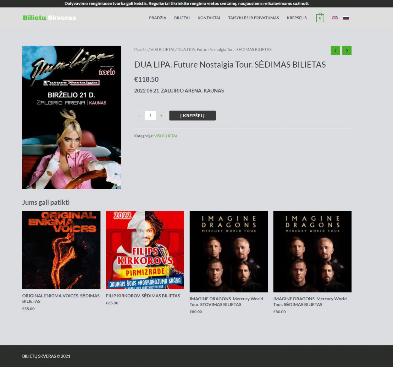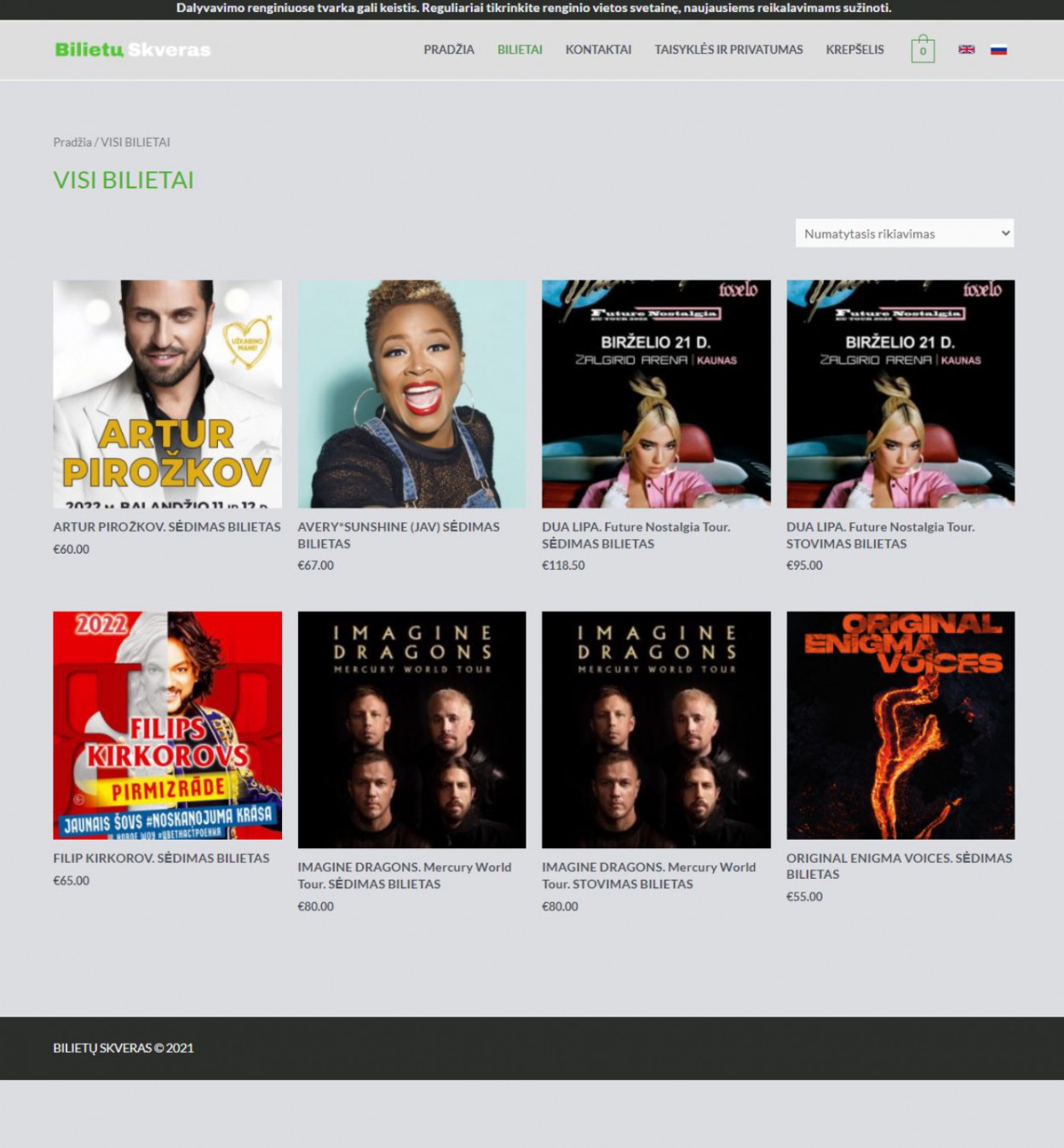 Kauno apskrities vyriausiojo policijos komisariato (toliau – Kauno apskr. VPK) Kriminalinės policijos nusikaltimų nuosavybei tyrimo valdybos pareigūnai, bendradarbiaujant su Kalėjimų departamento Žvalgybos pareigūnais, išaiškino melagingos interneto svetainės, kuri buvo pasiekiama adresu www.bilietuskveras.lt, veiklą. Kaip įtariama, minėtoje interneto svetainėje buvo prekiaujama tariamais bilietais į garsių atlikėjų, tokių kaip „Dua Lipa“, „Imagine Dragons“, „Avery Sunshine“, „Filip Kirkorov“ koncertus, organizuojamus 2022-aisiais Lietuvoje ir Latvijoje.