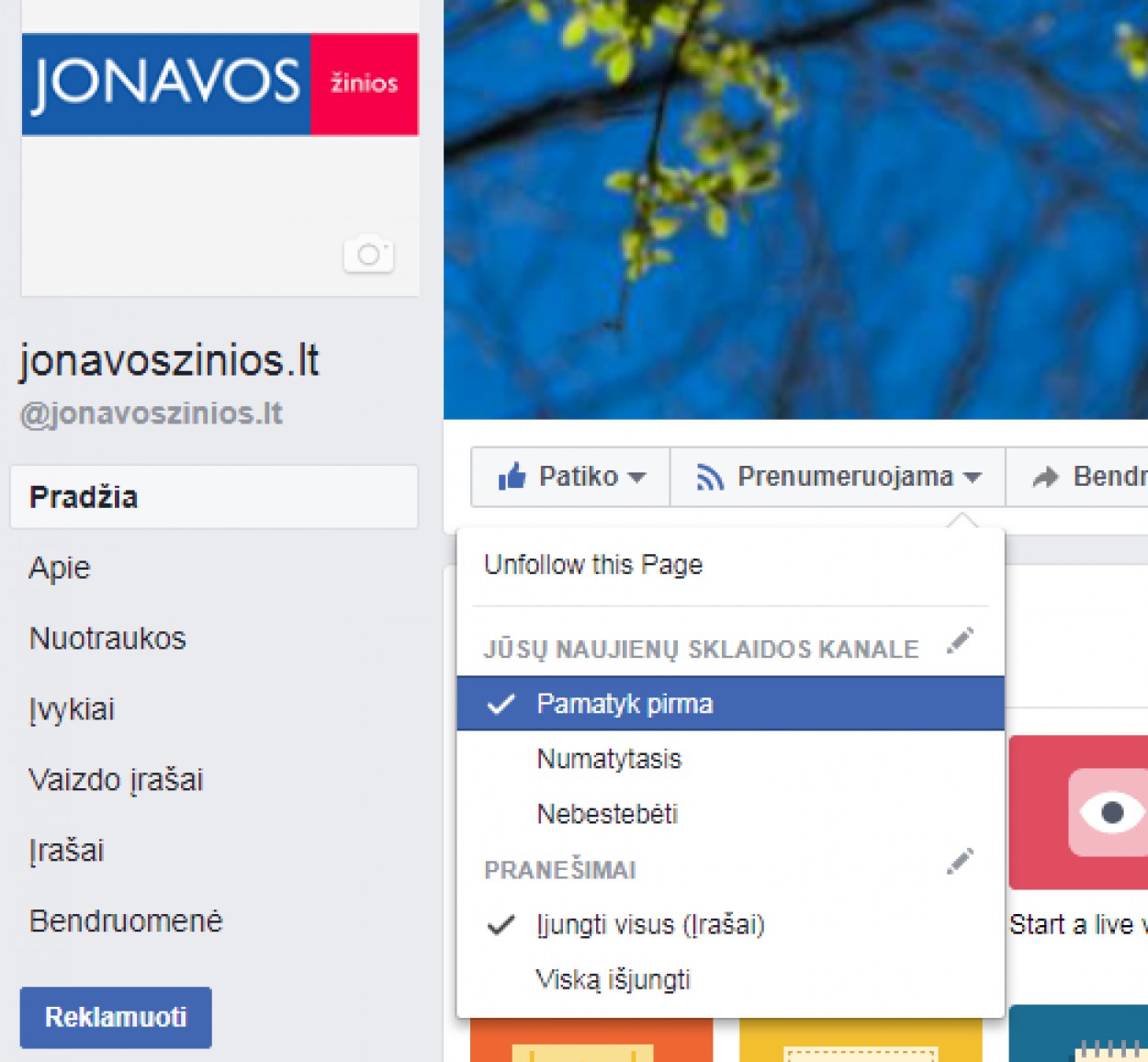Bet jei norite savo „Facebook“ sienoje ir toliau nepraleisti „jonavoszinios.lt“ skelbiamų straipsnių bei naujienų, rekomenduojame atlikti tokius žingsnius: