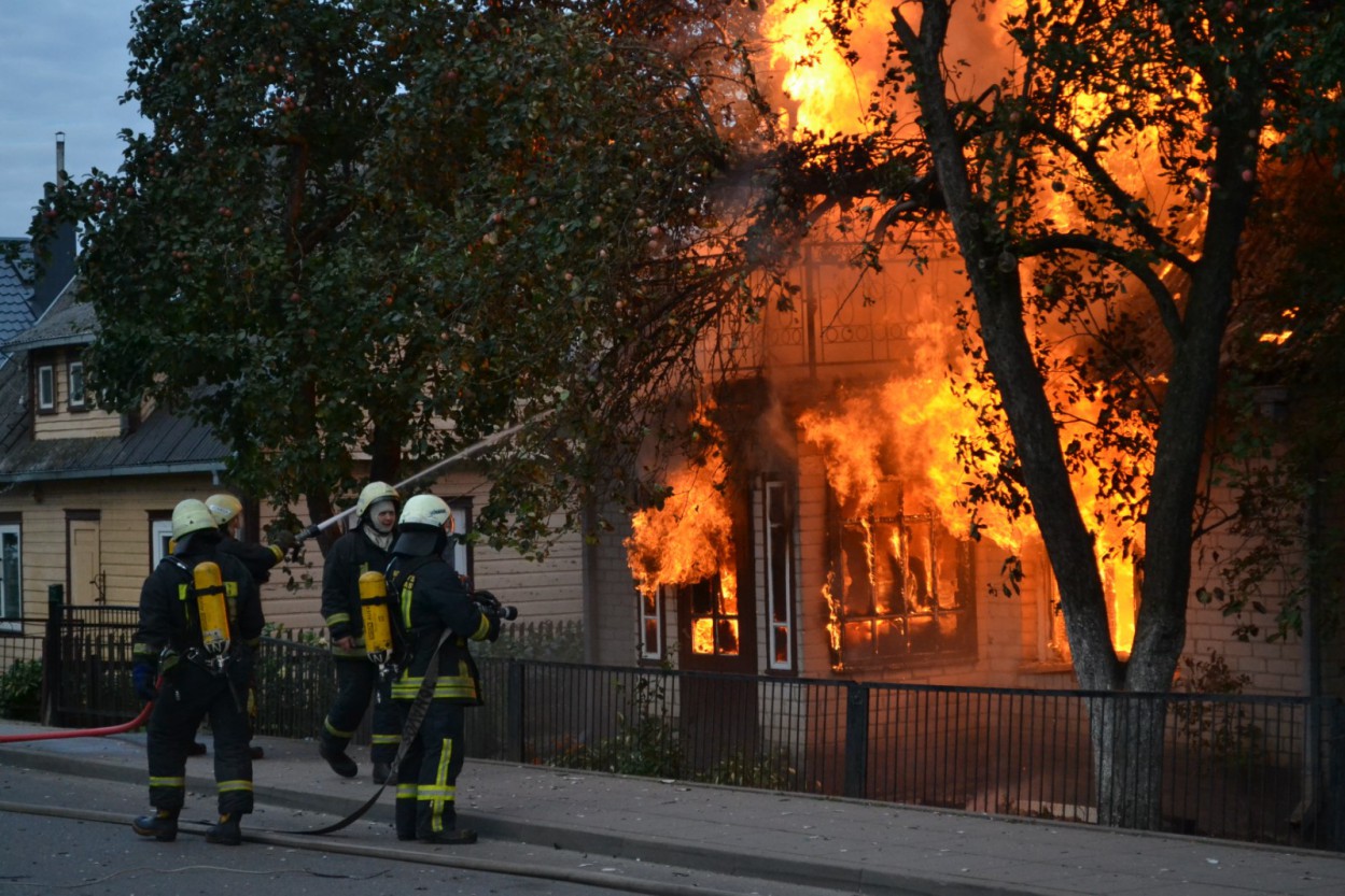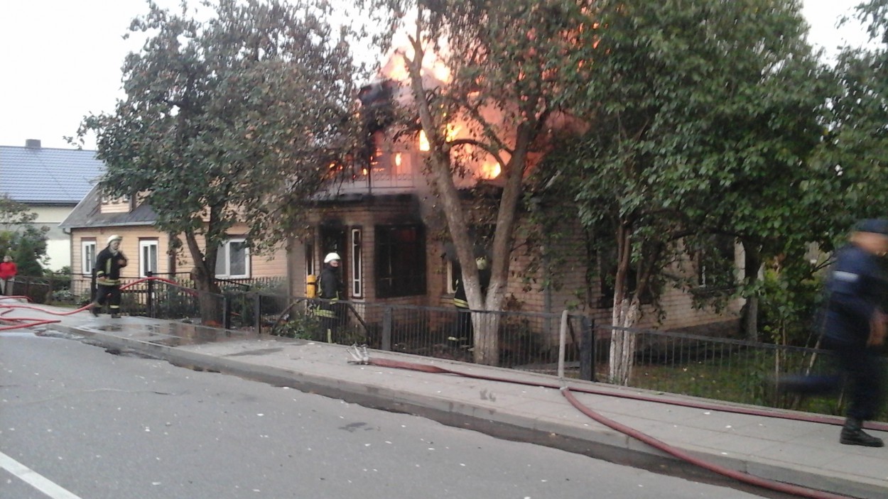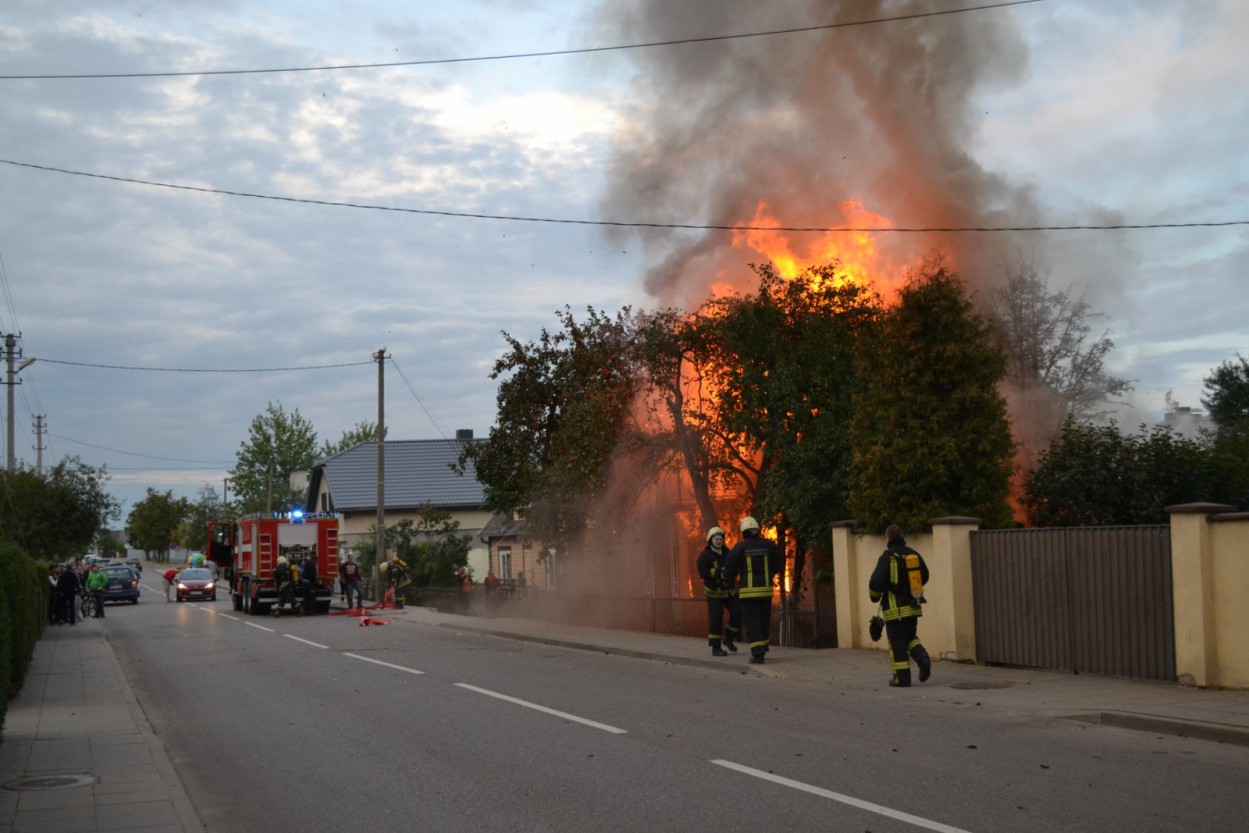 Į nelaimės vietą išsiųstos gausios ugniagesių, medikų ir policijos pajėgos. Pirminiais duomenimis, apie gaisrą dviejų aukštų mūriniame name pranešė kaimynai.