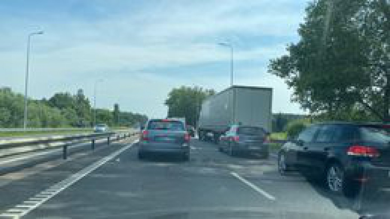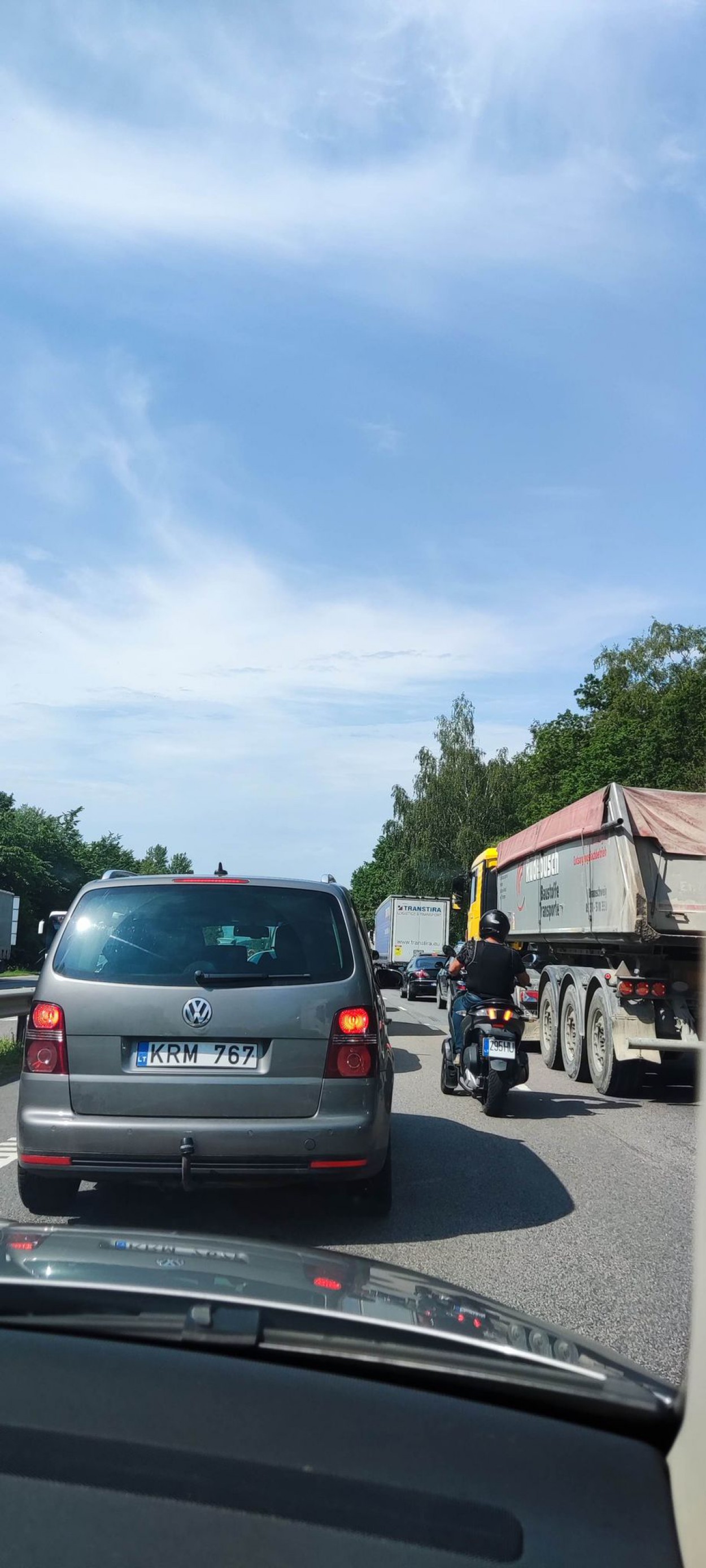Vairuotai praneša, kad eismas ribojamas. Dėl to susidarė automobilių spūstys.