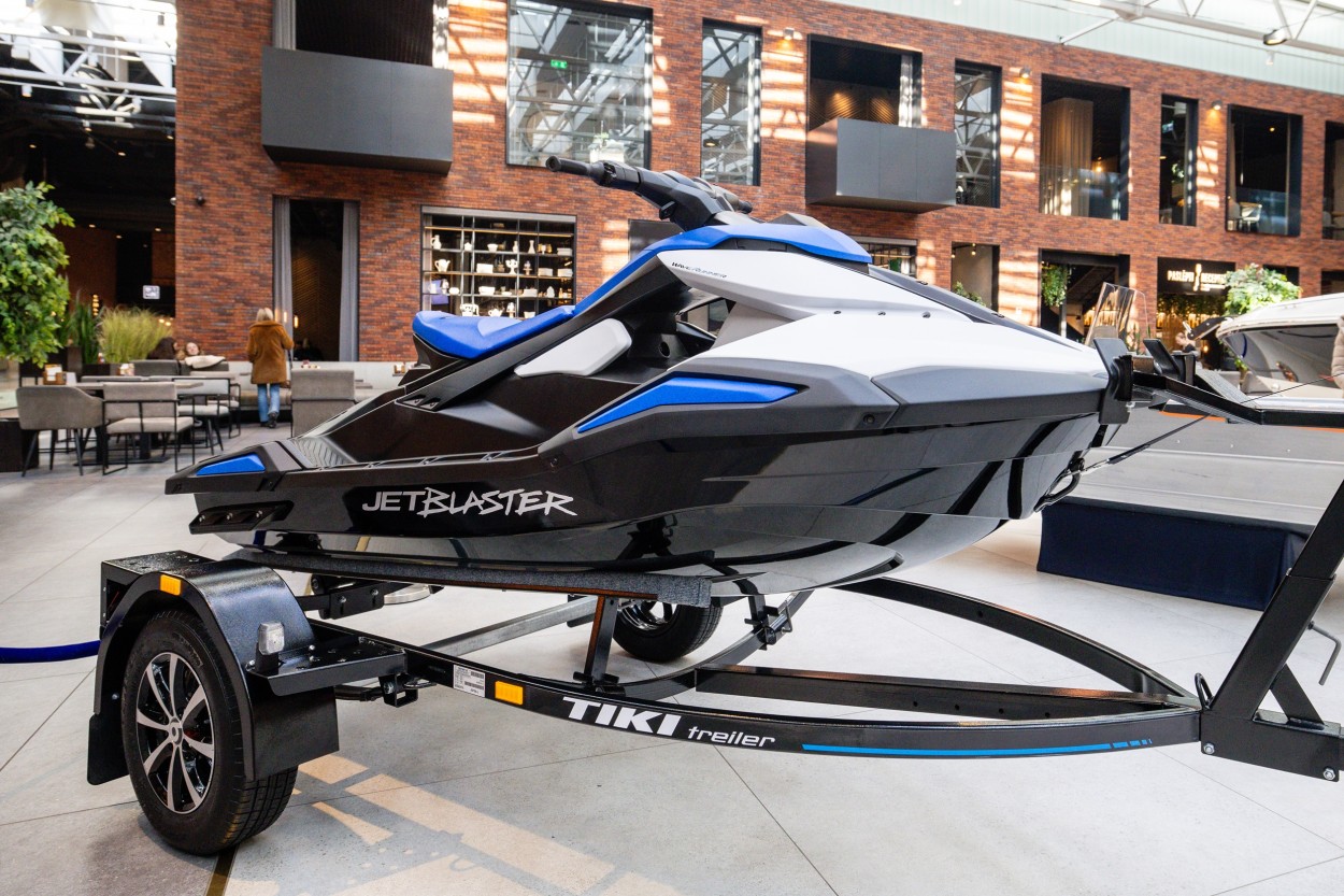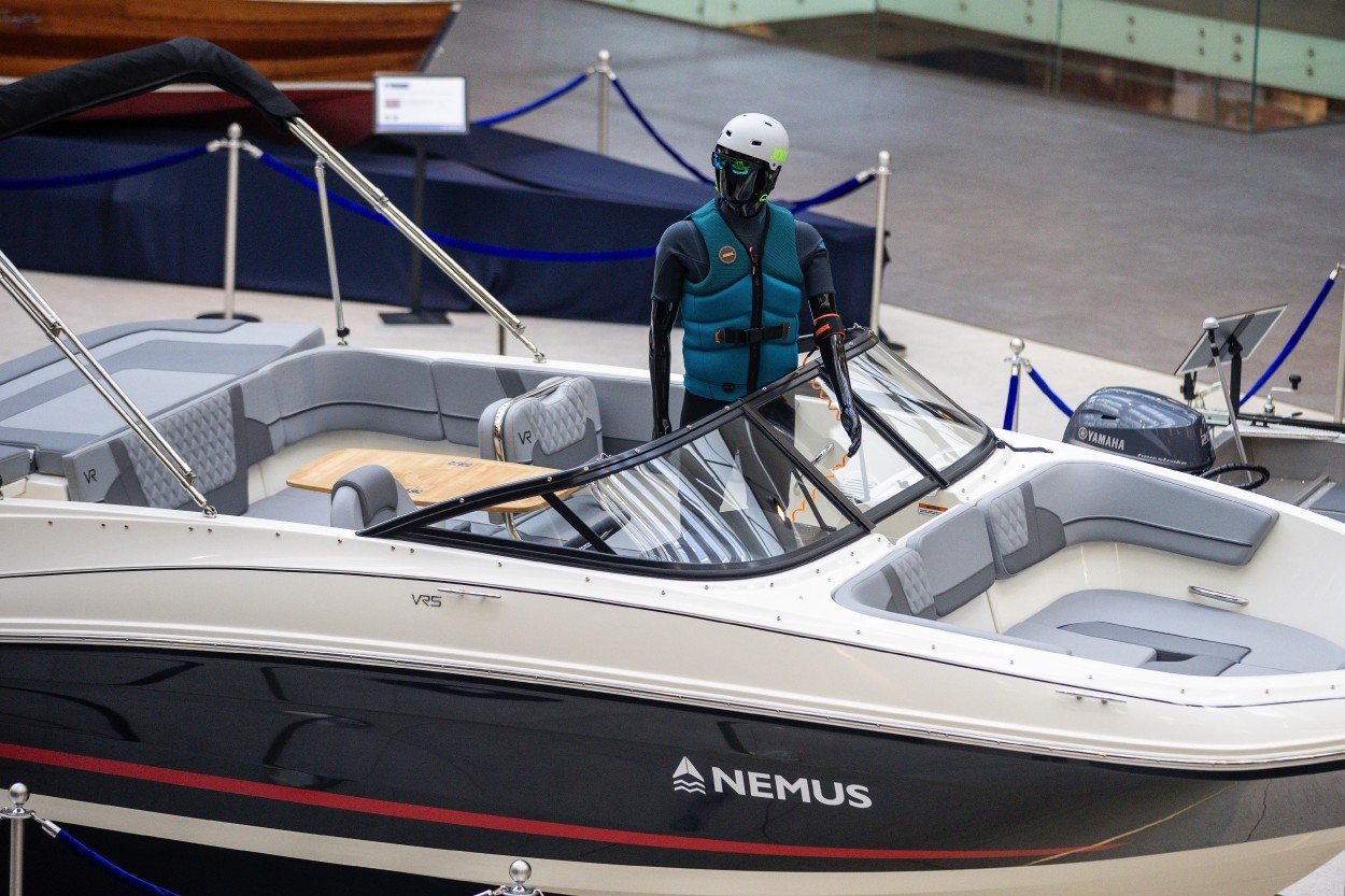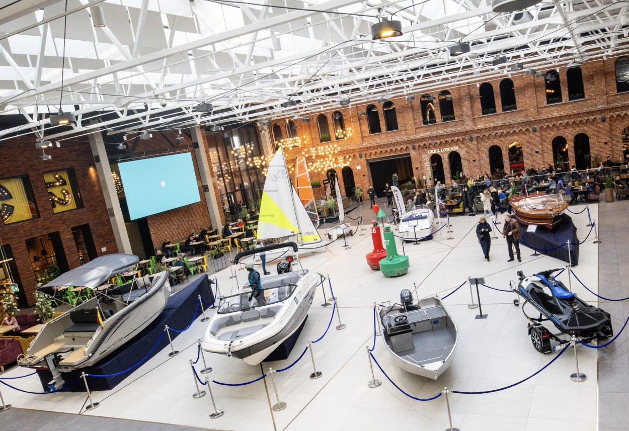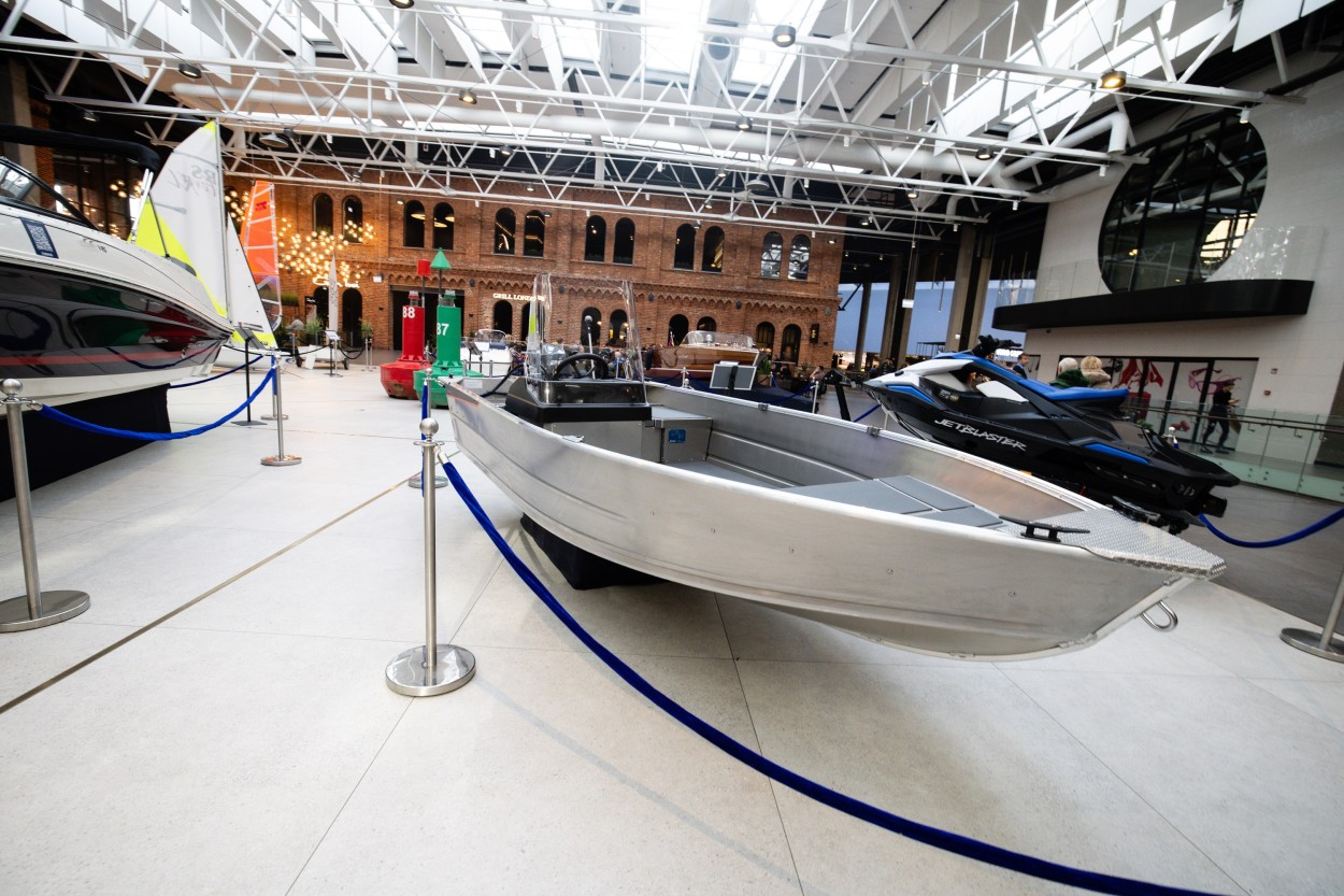 Tarp Kauno „Akropolyje“ įsikūrusių parodos eksponatų – vandens motociklas, itin Lietuvoje populiarūs žvejybiniai ir pramoginiai kateriai bei du vandens kelio ženklai.