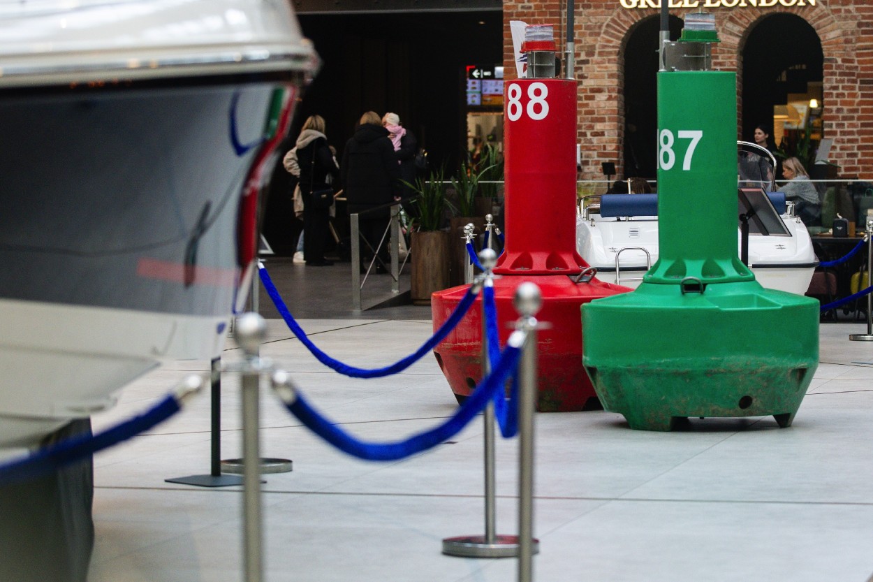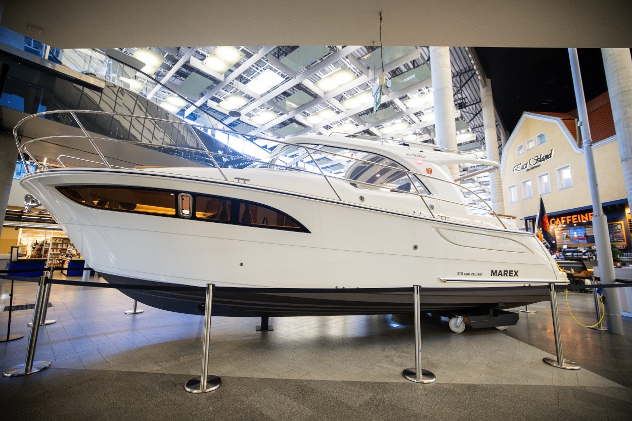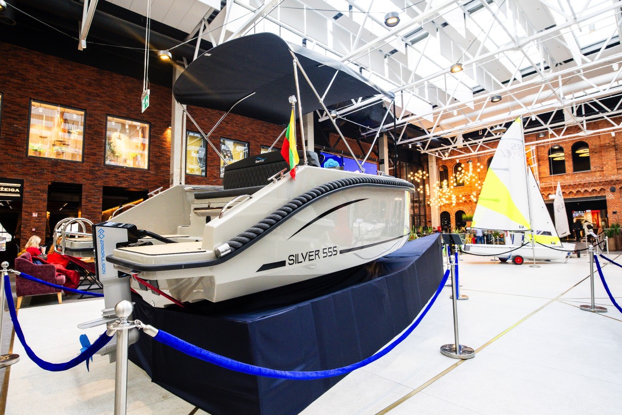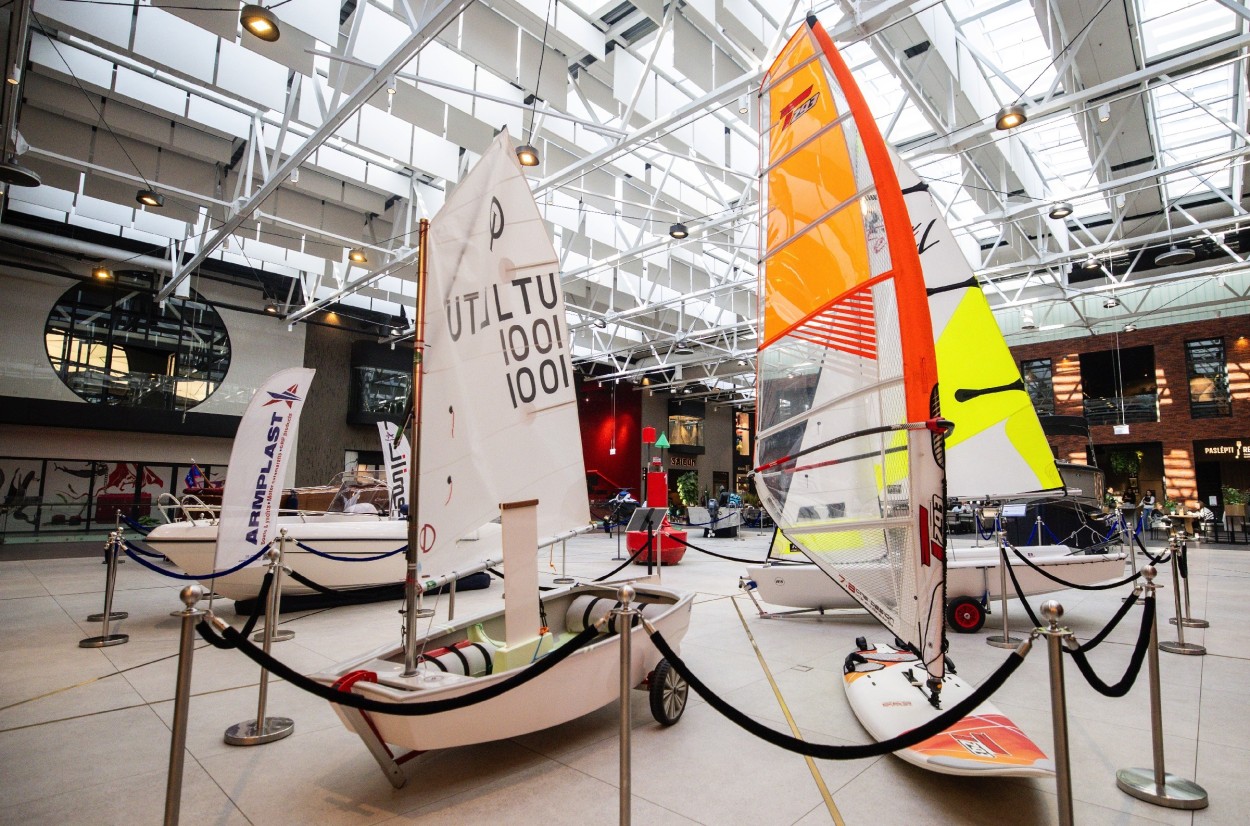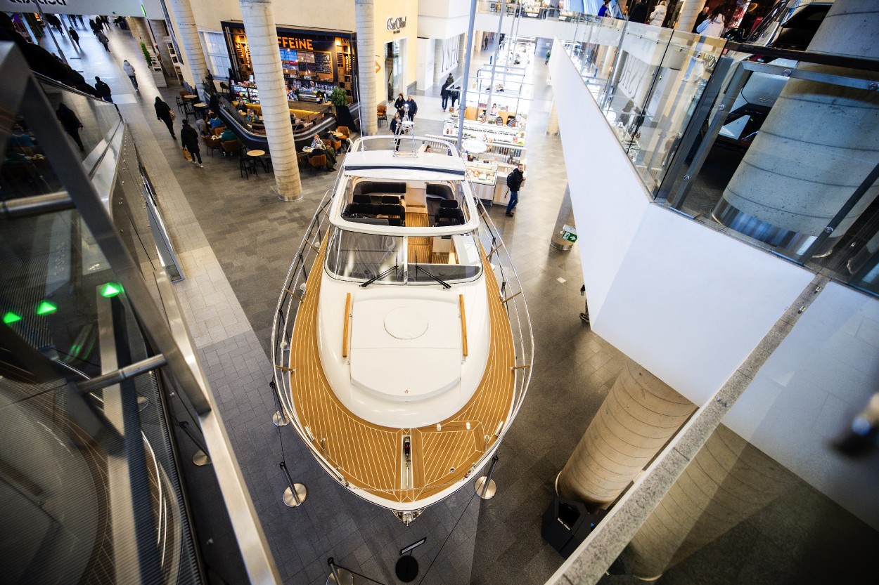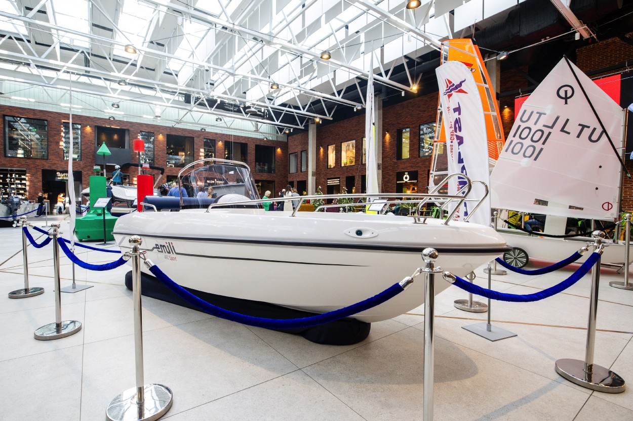 Pirmajame prekybos centro aukšte įkurdinta įspūdinga daugiau kaip 9,5 metrų ilgio ir beveik 4,5 metrų aukščio „Marex 310“ jachta. Pasak K. Valentos, nors tai – mažiausias laivas iš Lietuvos gamintojų „Marex Boats“ asortimento, tačiau jo atgabenimas į prekybos centro erdves vis viena tapo nemenku iššūkiu. „Specialiai šiam projektui per savaitę laiko reikėjo suprojektuoti ir pagaminti sužemintos konstrukcijos transportavimo platformas su ratukais, nuardyti variklio koją bei komunikacijos antenas. Visa tai leido turėti kelių centimetrų rezervą, kad laivas nekliudytų nei aplinkinių objektų, nei inžinerinių sistemų. Tačiau savaitę trukęs profesionalus pasirengimas leido šią užduotį sklandžiai įgyvendinti“, – sakė jis.