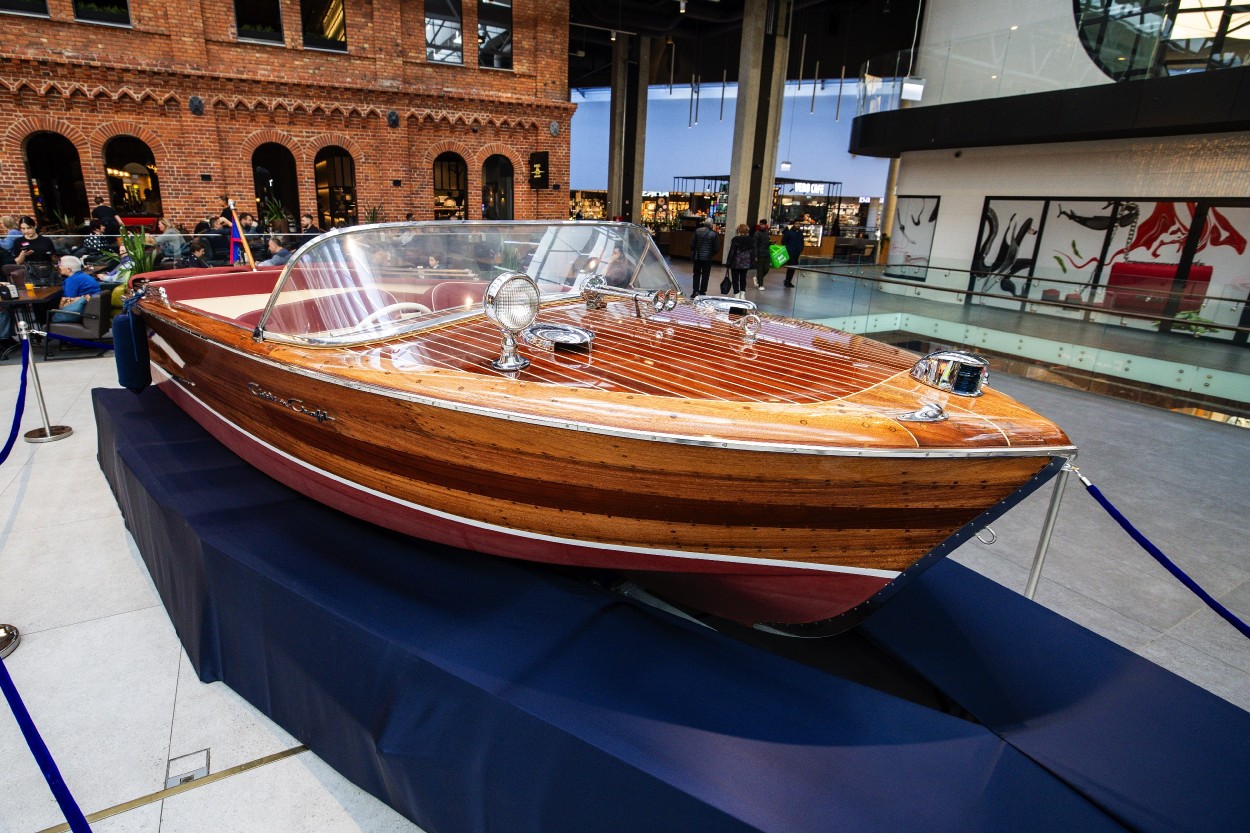 „Tai limituoto tiražo JAV gamintas raudonmedžio laivas. Visame pasaulyje „Chris Craft“ gaminiai garsūs tuo, kad yra rankų darbo, sukalti iš medžio lentelių bei sukniedyti. Kadangi yra medinio korpuso, šių laivų išlikę nedaug, rasti originalių dalių jiems – iššūkis, todėl jų restauravimas reikalauja daug laiko ir gilaus technologinio išmanymo. Parodoje eksponuojamas 1955 metų laivas nuo variklio iki korpuso buvo atrestauruotas Lietuvoje“, – sako „LitBOAT“ vadovas.