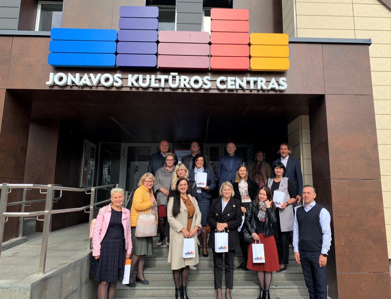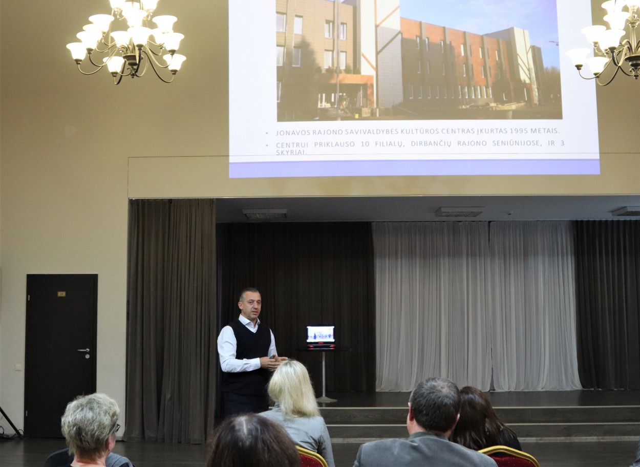 Kultūros centro direktorius Sergejus Jefimenka kolegoms pristatė Jonavos kultūros centro veiklą, iššūkių įveikimą pandemijos laikotarpiu, darbo organizavimą. Svečiai apžiūrėjo Kultūros centro sales bei mėgėjų meno kolektyvų repeticijų kabinetus.