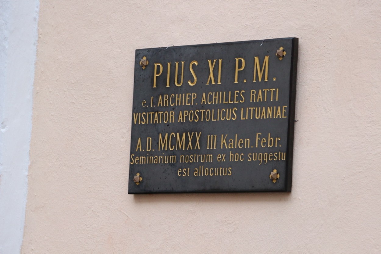 Kai Achille Ratti tapo išrinktas Pijumi XI, tuometis seminarijos rektorius Jonas Mačiulis-Maironis pakabino prie seminarijos atminimo lentą, kurioje užrašė, jog „iš šitos vietos kalbėjęs Šventasis Tėvas Pijus XI, tebebūdamas dar Apaštališkuoju Vizitatoriumi“. Kai Kauno kunigų seminarijos kiemelyje 2020 metais ši atminimo lenta buvo atnaujinta, to meto nuncijus Baltijos šalyse arkivyskupas Petaras Antunas Rajičius pabrėžė, jog popiežius Pijus XI (Achile Ratti) savo sprendimais prisidėjo prie vietinės Bažnyčios perorganizavimo, ir tuo pat metu tai buvo galutinis Lietuvos Respublikos nepriklausomybės patvirtinimas tarptautiniu lygmeniu. Nepaisant sunkių laikų, Šventasis Tėvas norėjo padėti tiek Bažnyčiai, tiek valstybei įsikurti ant tvirtų pamatų.