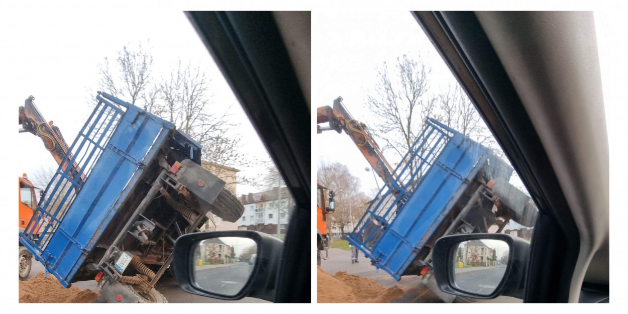 Susisiekus su bendrove paaiškinta, kad apvirtusi priekaba vežė smėlį.
