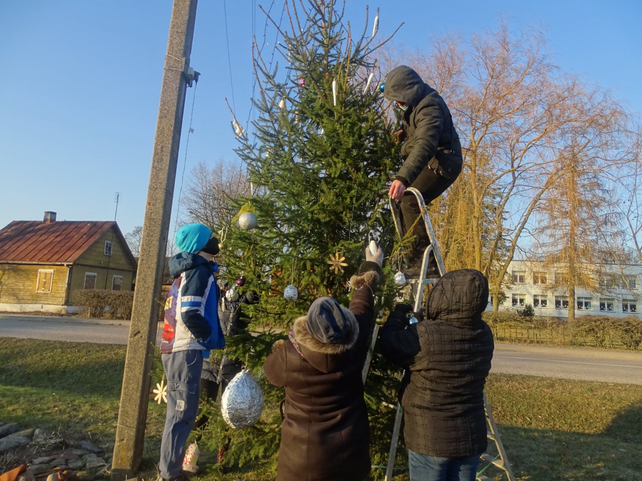 Nuotraukų galerijoje - Panoterių miestelio kalėdinės eglutės puošimo darbai
