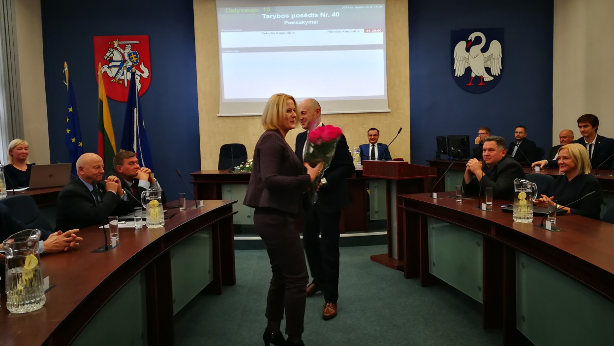 Šios dienos tarybos posėdyje nuspręsta skirti Jurgitą Macionienę nuo 2018 m. lapkričio 12 d. Jonavos vaikų lopšelio-darželio „Dobilas“ direktore penkeriems metams, nustatant pareiginės algos pastoviosios dalies koeficientą 9,87. Priimant sprendimą nuo balsavimo nusišalino tarybos narys Kęstutis Macionis. Tarybos narys privalo nusišalinti, kai sprendžiami su juo ar jo šeimos nariais susiję klausimai, o Jurgita Macionienė yra jo žmona.