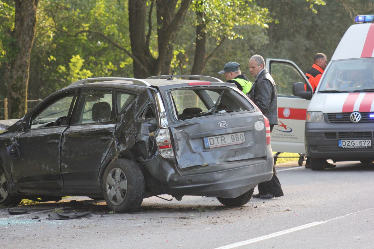 Avarijos metu metu du žmonės dėl kaklo lūžio ir rankos sužalojimo išvežti į ligoninę.