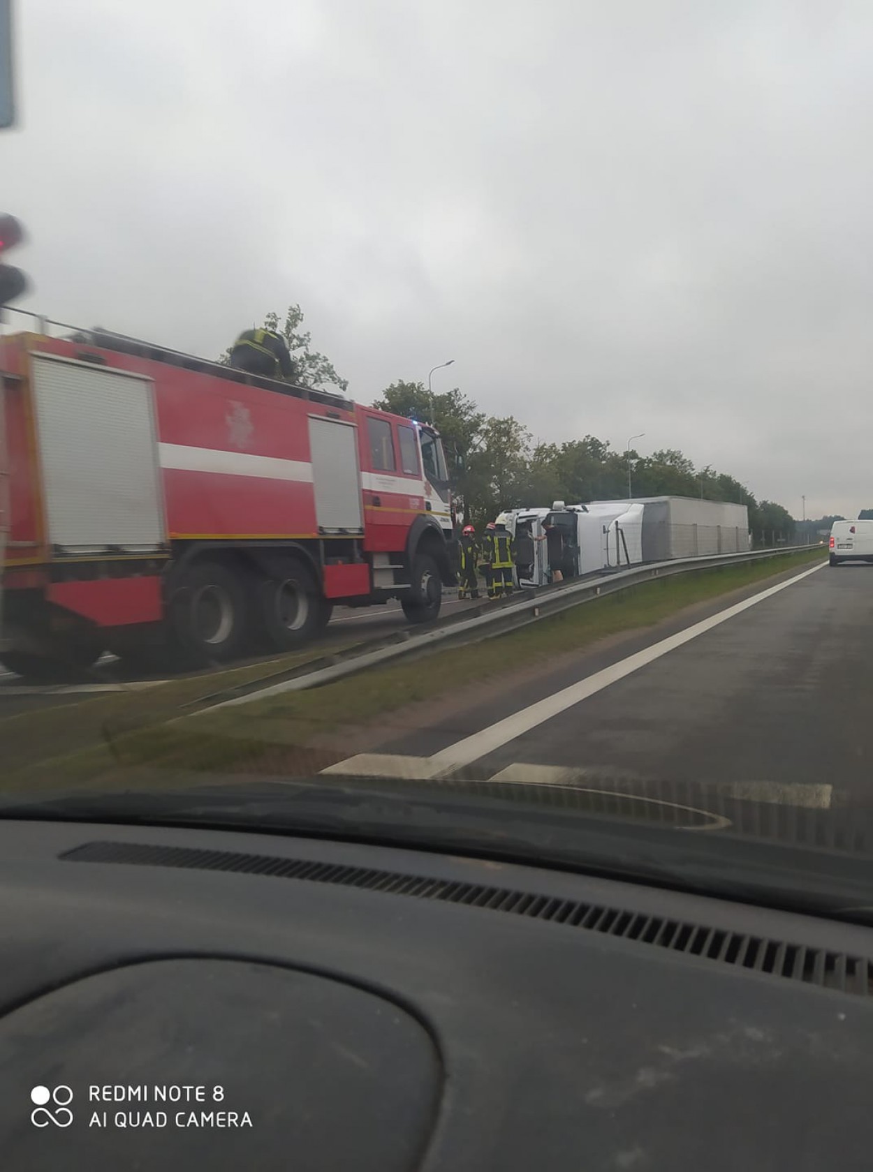 Šiandien, liepos 29-ąją, apie 06.00 val. kelyje Jonava - Kaunas, Užusalių seniūnijose teritorijoje apvirto vilkikas ,,Renault Premium" su puspriekabe. Į įvykio vietą buvo iškviesti policijos pareigūnai, ugniagesiai gelbėtojai ir medikai.