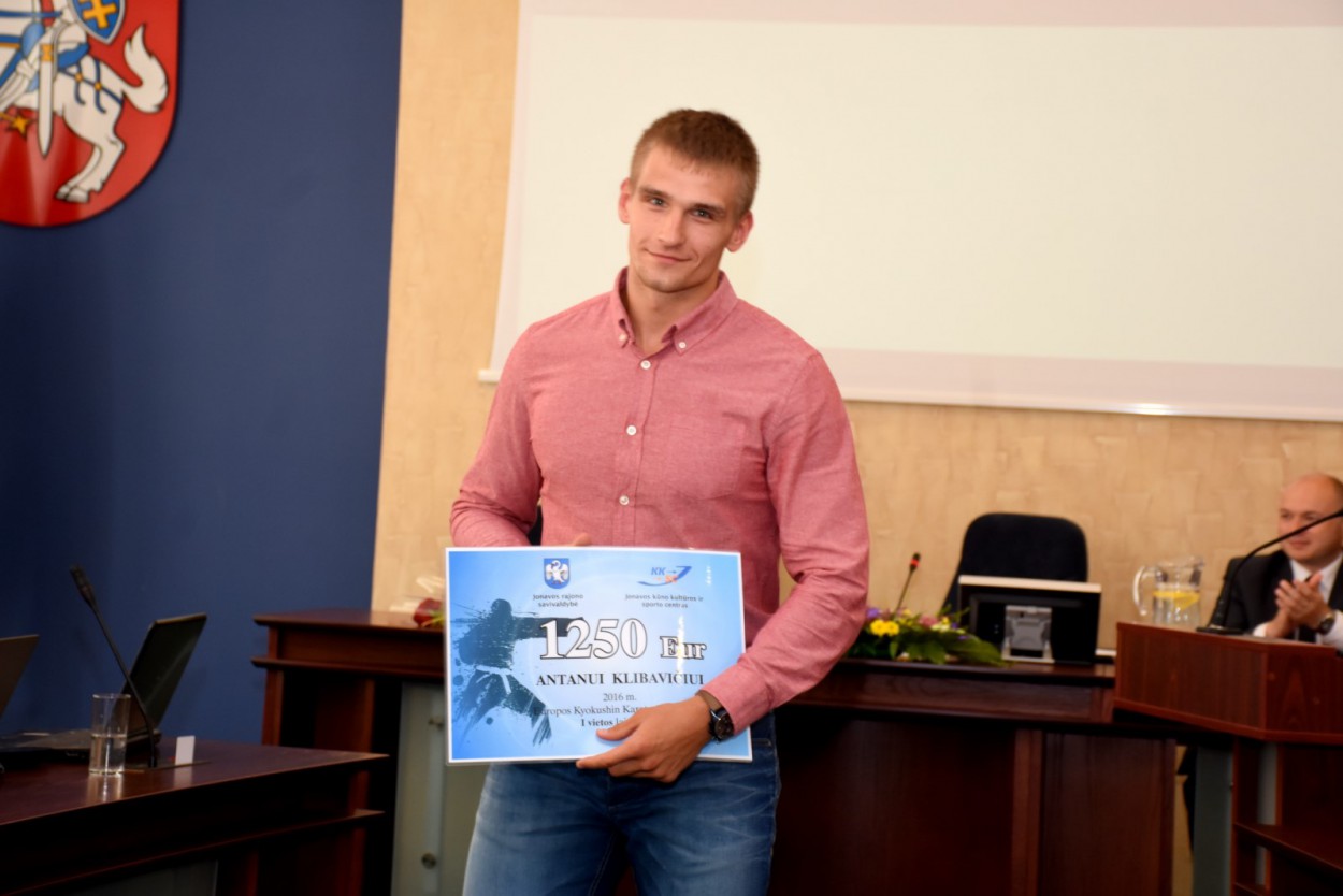 Ketvirtadienio tarybos posėdžio metu rajono meras Mindaugas Sinkevičius sportininkams A. Klibavičiui ir O. Balčiui bei jų treneriams V. Braslauskui ir A. Jakštui įteikė piniginius čekius už tokius aukštus sportinius pasiekimus bei atletų paruošimą kovoms.