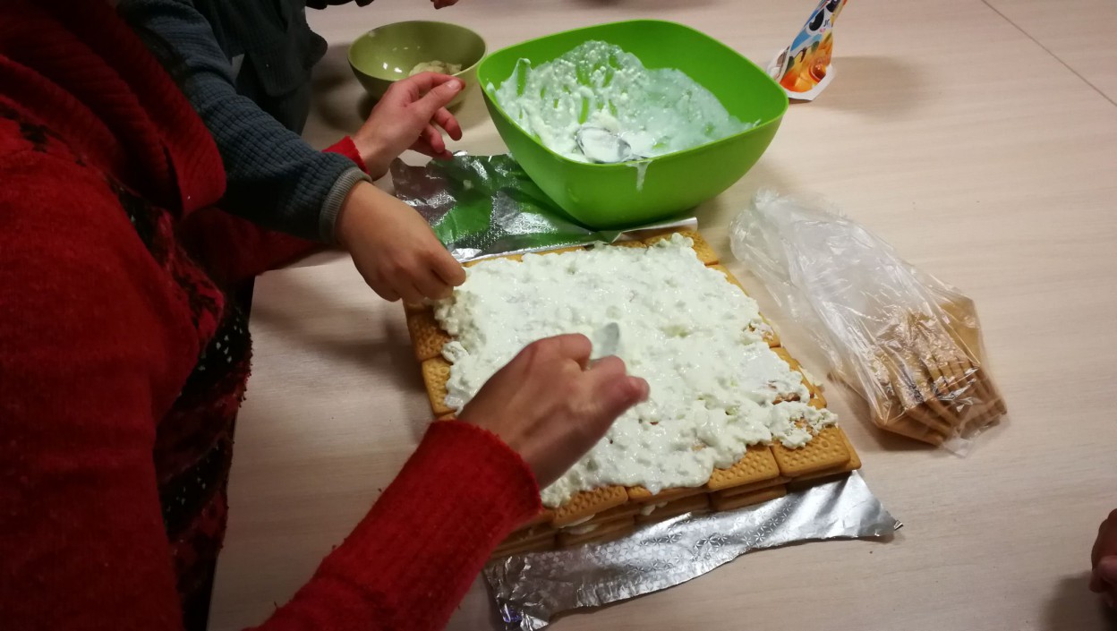 "Mūsų centro užsiėmimus lanko suaugusiųjų grupės, o šiandien jie atvyko su vaikais. Mes pakeitėme tradicinės Pyragų dienos koncepciją, pasiskolinome šią gražią idėją ir surengėme šią šventę savaip - šeimos būryje, bendromis jėgomis pasigaminti nekeptą pyragą ir vėliau juo vaišintis. Produktai, iš kurių šiandien gaminamas pyragas, yra prieinami socialiai remtinoms šeimoms. Jį galima gaminti iš gaunamos paramos maisto produktais – bananai, sausainiai, varškė", - sako socialinė darbuotoja Natalija Jasilionienė.