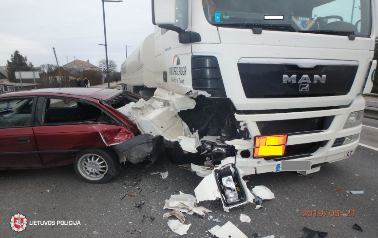 Popietę (apie 15.28 val.) Karmėlavoje (Kauno r.), Vilniaus gatvėje, dėl saugaus atstumo nesilaikymo į priekyje važiavusį automobilį „Opel Astra“ atsitrenkė krovininis automobilis „MAN“ (autocisterna), vairuojamas 45 metų vyro. Nukentėjo lengvojo automobilio 28 metų keleivis (paskirtas ambulatorinis gydymas).