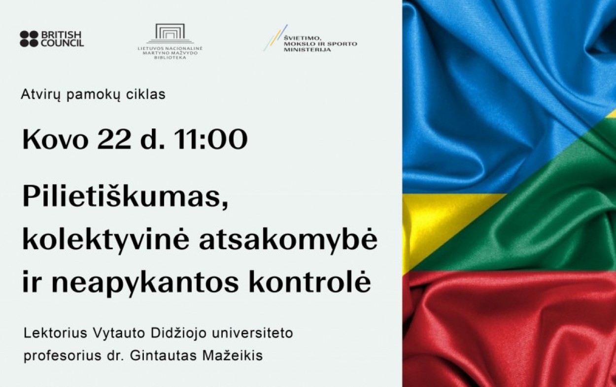 Kovo 22 d. kviečiame į 8-ąją atvirą pamoką, kuri skirta 9–12 klasių mokiniams. Pamokos „Pilietiškumas, kolektyvinė atsakomybė ir neapykantos kontrolė“ lektorius – filosofas, kultūros teoretikas, antropologas, Vytauto Didžiojo universiteto profesorius dr. Gintautas Mažeikis šį kartą daugiausiai dėmesio skirs tautiškumo ir pilietiškumo temoms.
