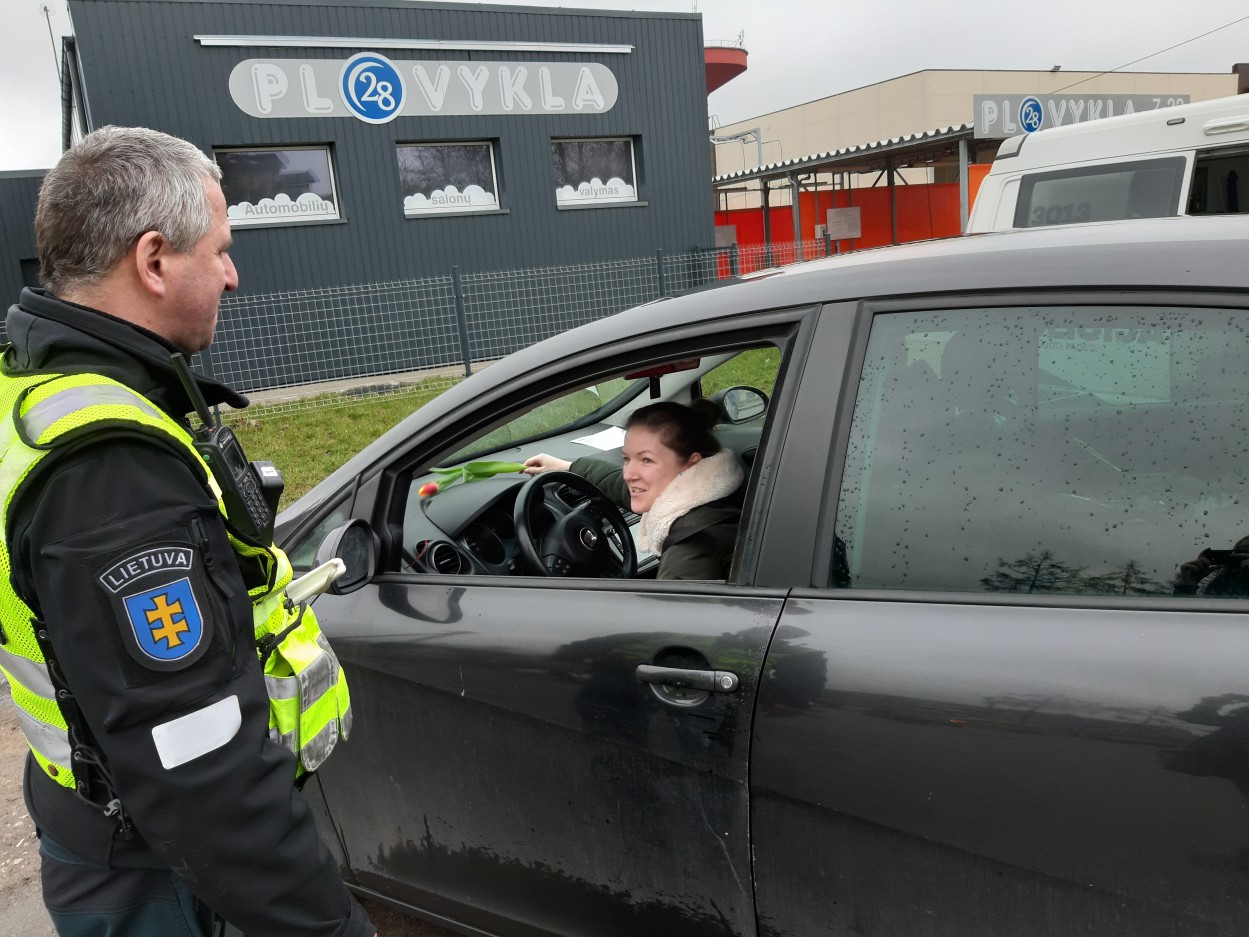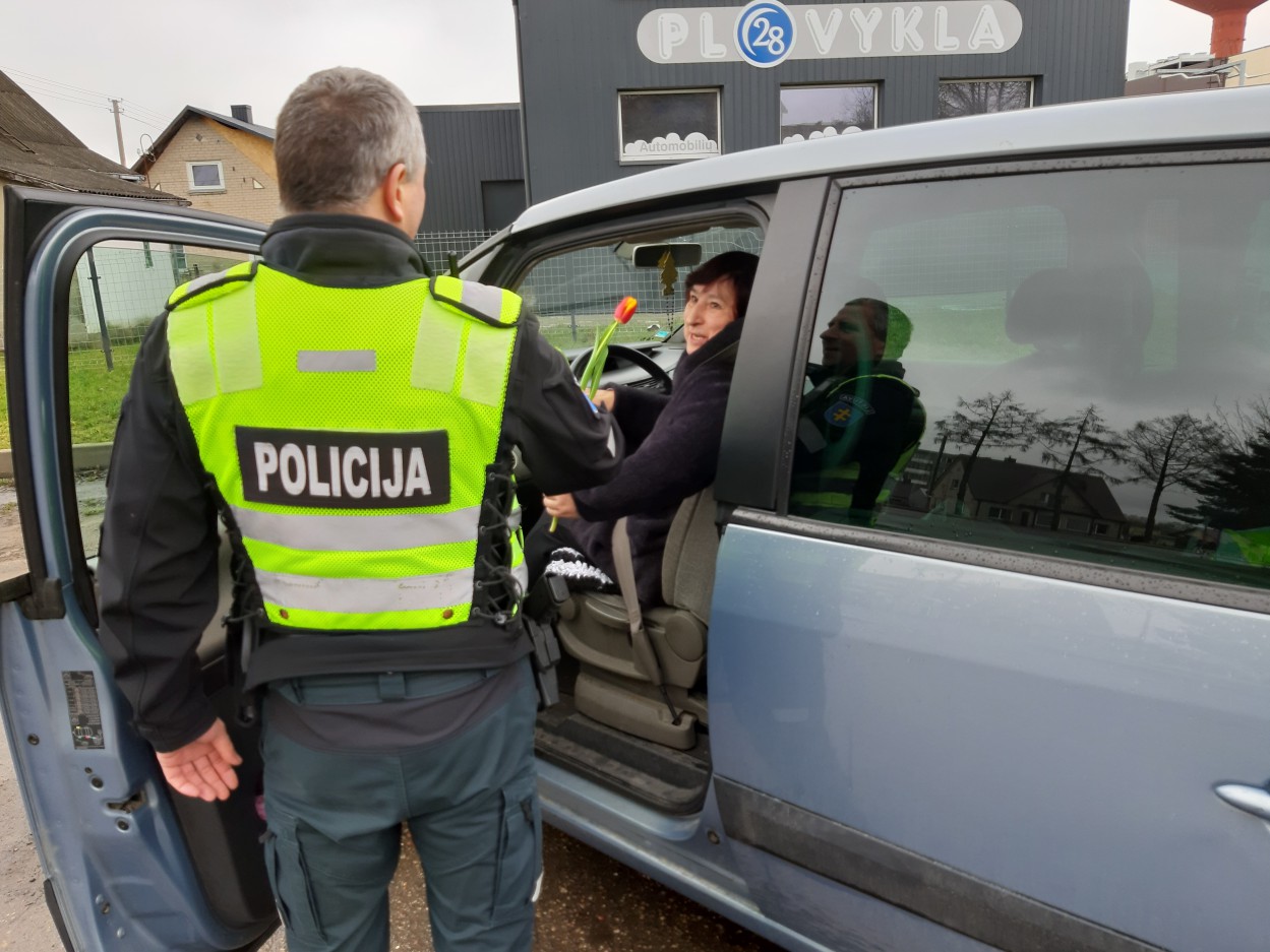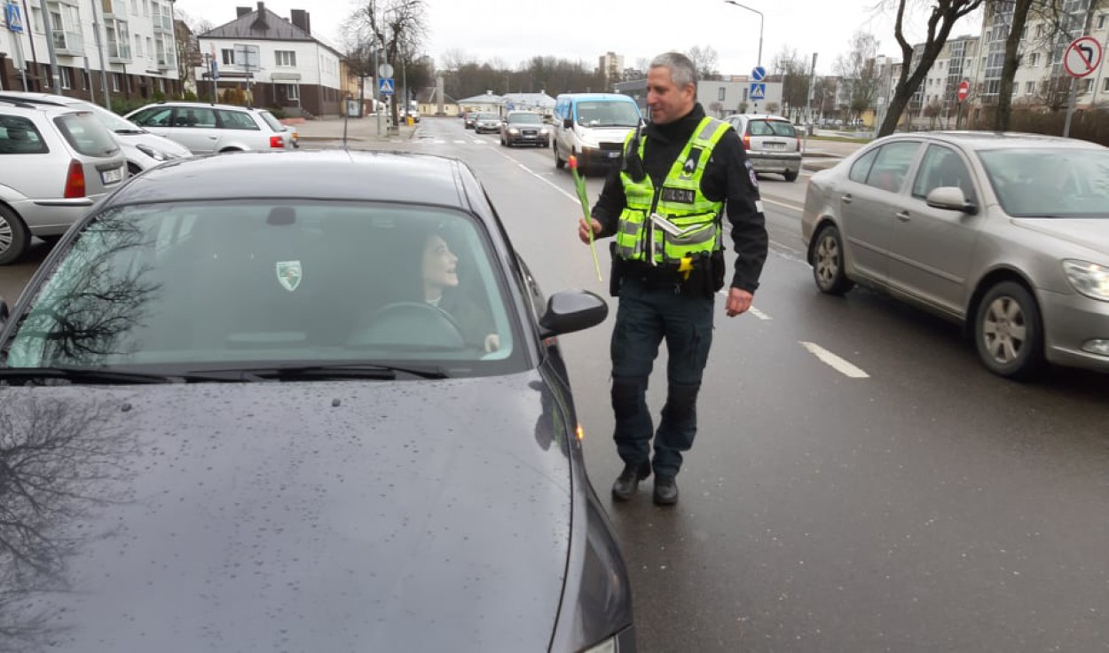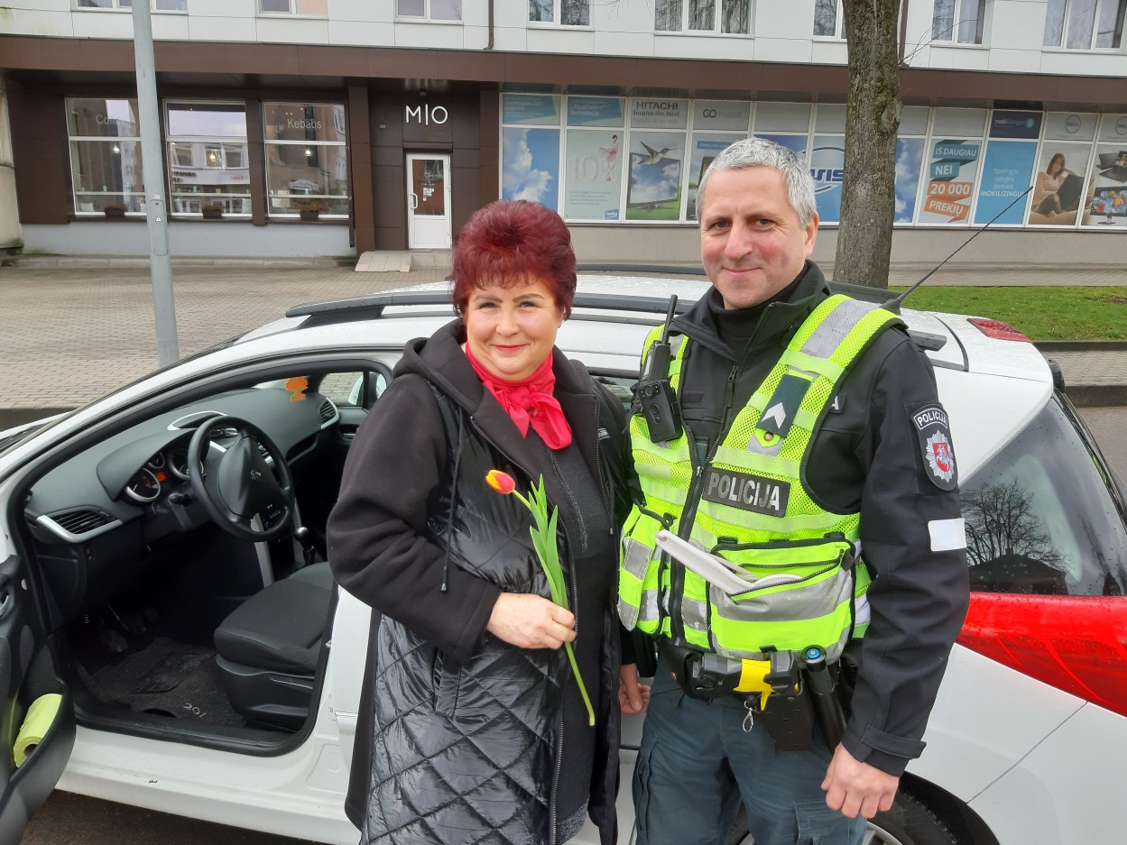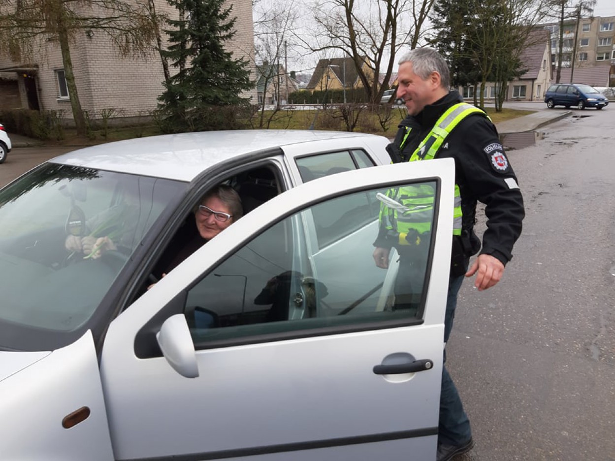 Vairuotojos sveikintos Jono Basanvičiaus, Jeronimo Ralio bei Žemaitės gatvėse. Ne viena jų tikino, kad iš pradžių pamačius pareigūną, nurodantį sustoti kelkraštyje, joms kilo nerimas.