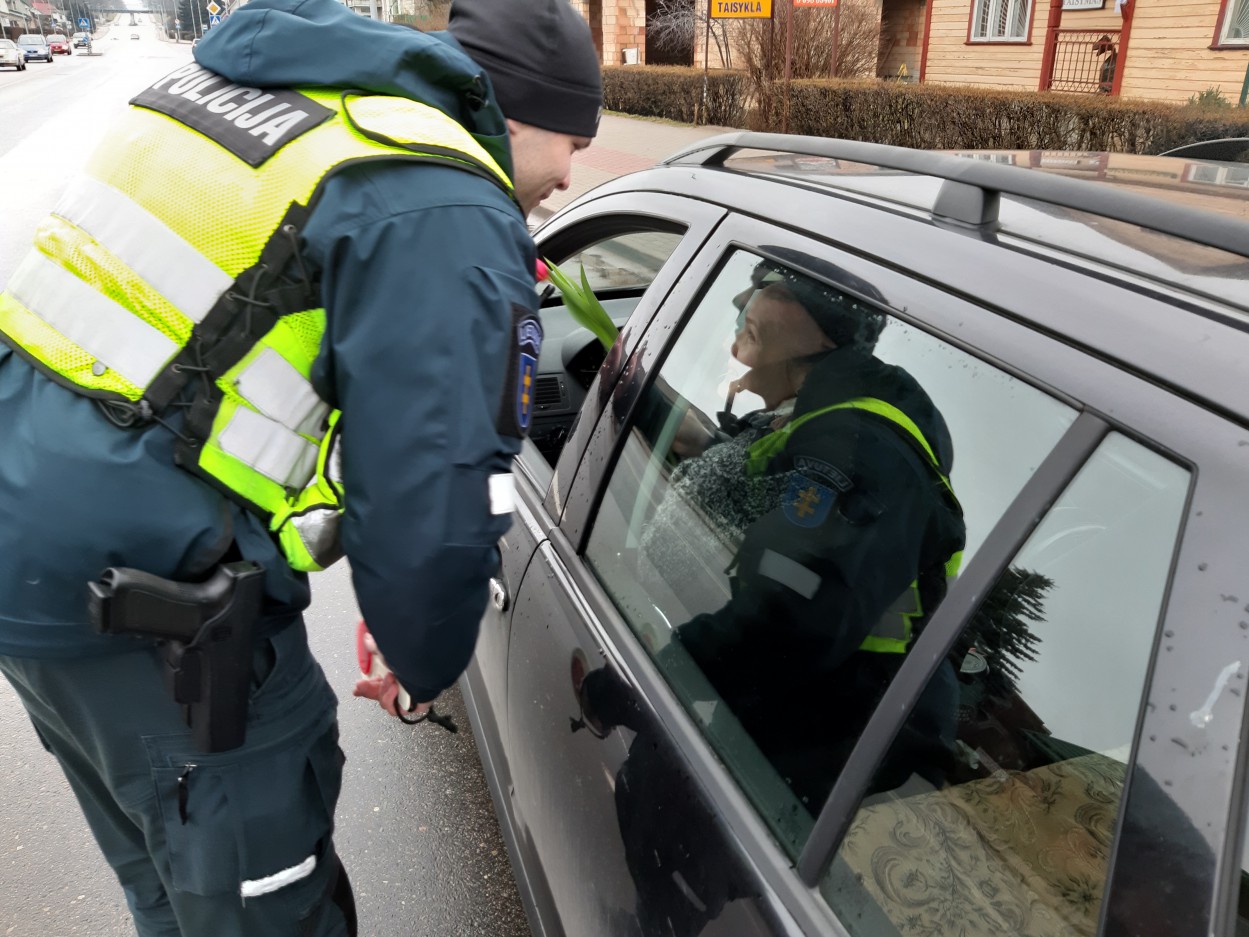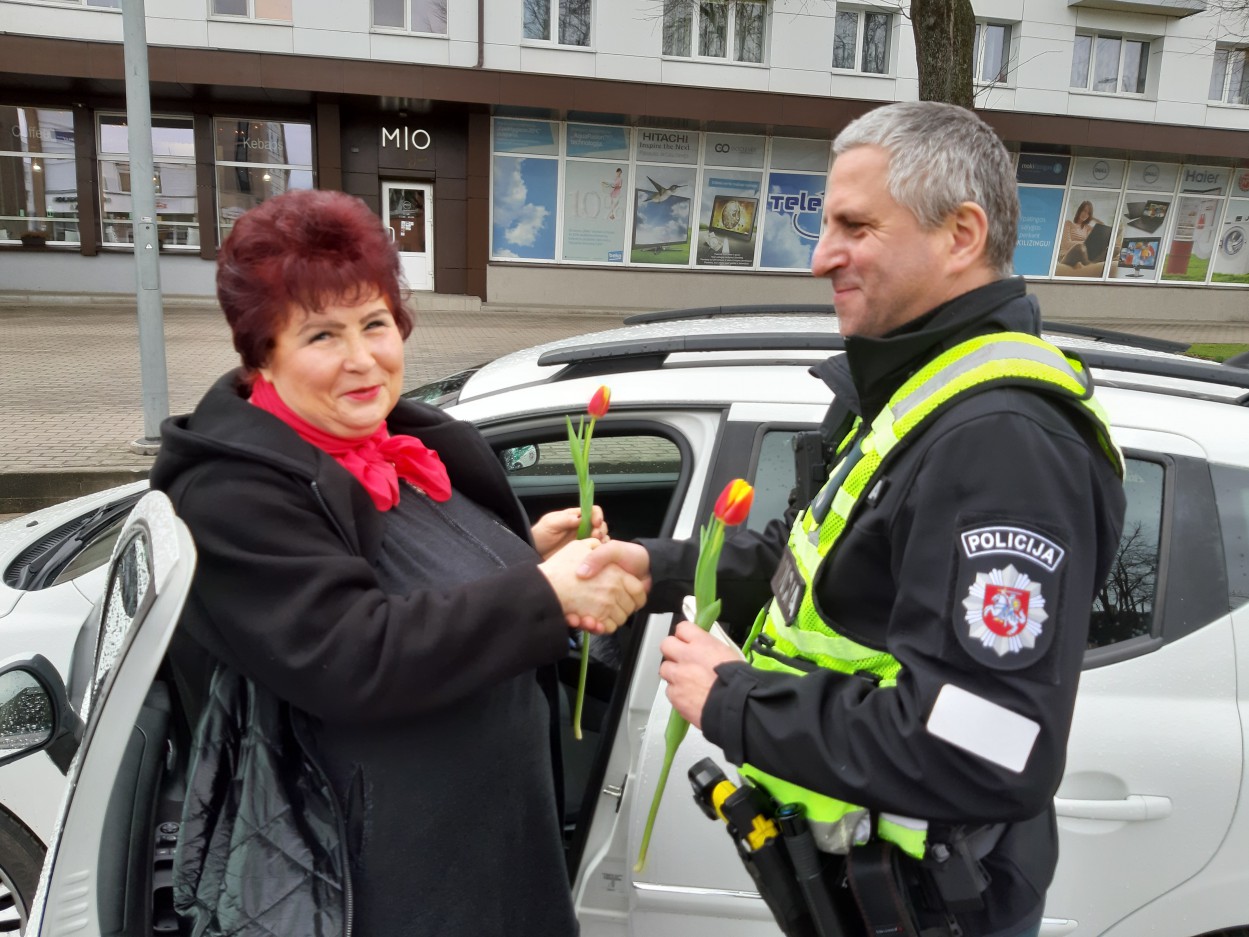 Šventinės iniciatyvos metu šypsena pasipuošė ne tik pasveikintų moterų, bet ir pareigūnu veidai. Atsakydamos į sveikinimą, jos jiems dėkojo bei linkėjo gražios dienos.