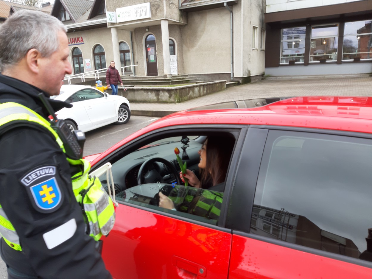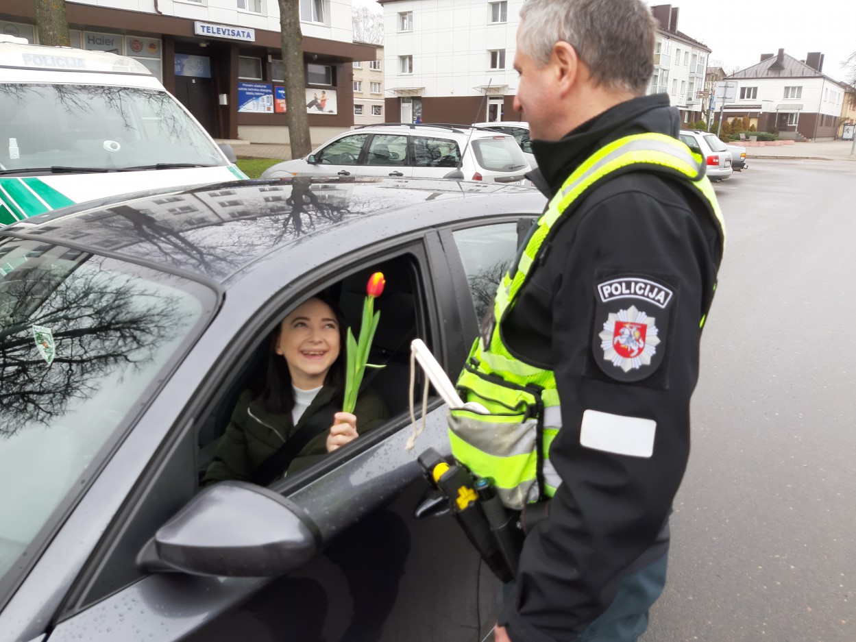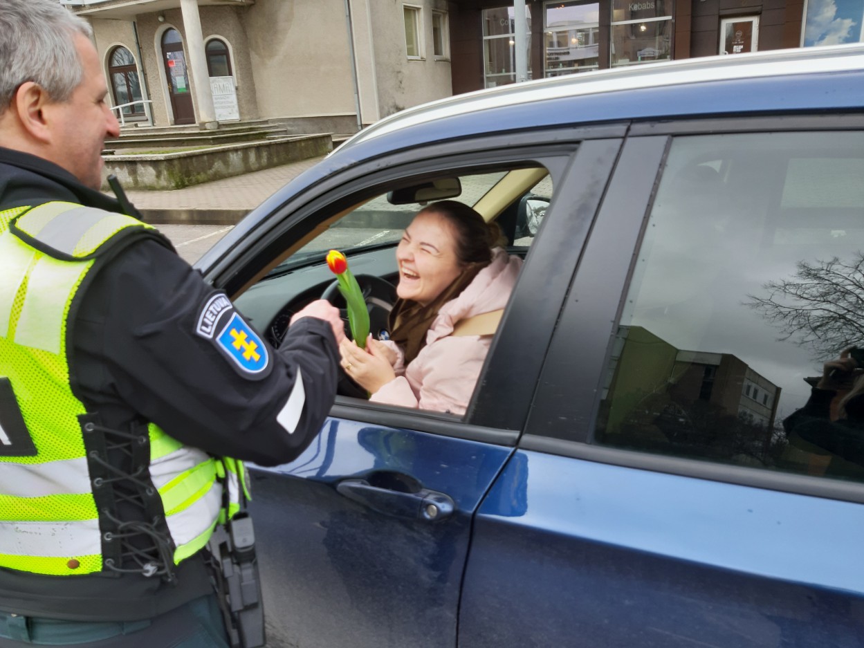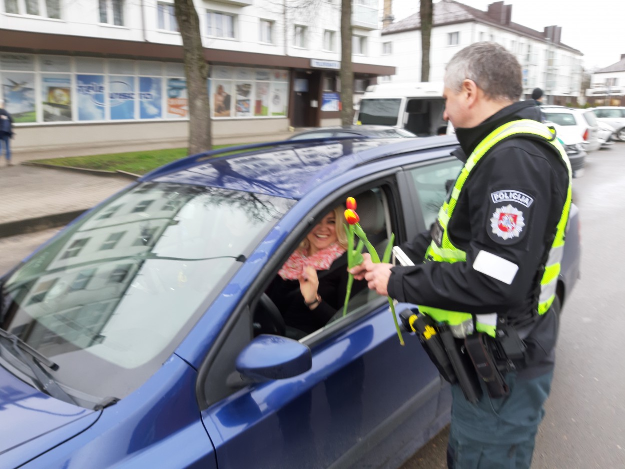 Šiandien, kovo 8-ąją, minint Tarptautinę moterų solidarumą dieną, policijos pareigūnai tęsia gražią tradiciją - sveikina vairuotojas. Pastaroji neaplenkė ir mūsų miesto - iš pareigūnų rankų įteiktais tulpių žiedais buvo pasveikinta apie 70 moterų bei merginų.