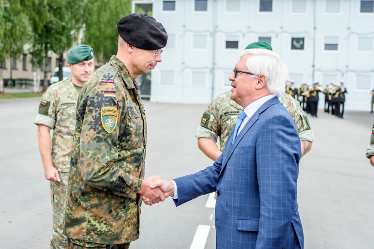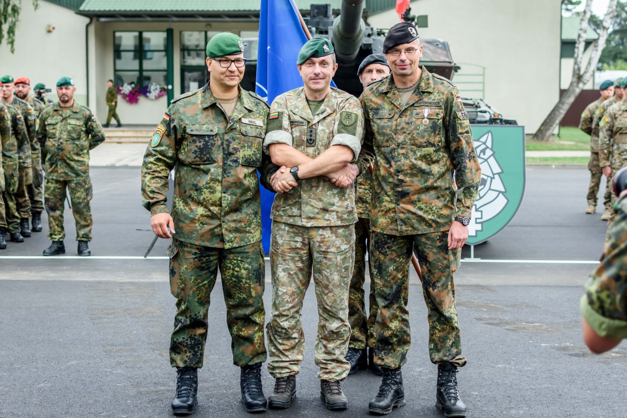 Viceministras padėkojo tarnybą Lietuvoje baigusiam plk. ltn. P. Papenbroockui už puikų darbą, o vadovavimą tūkstančio karių grupei perėmusiam plk. ltn. R. Habeliui palinkėjo sėkmės tęsiant grupės veiklą. „ Savo ruožtu noriu pabrėžti, kad Lietuva ir toliau užtikrins kovinei grupei reikiamą paramą ir bendradarbiavimą, – pabrėžė krašto apsaugos viceministras V. Umbrasas.