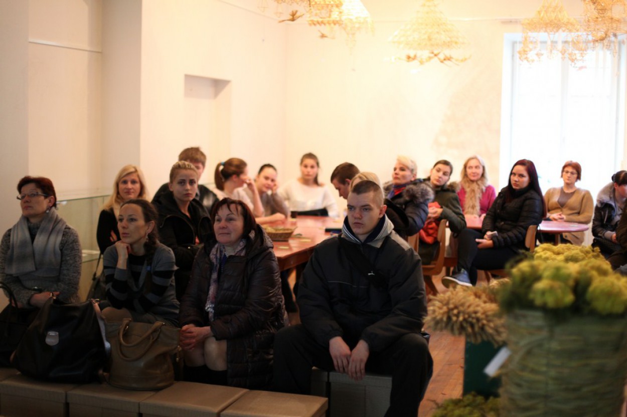 Muziejaus darbuotoja visiems priminė, jog prasidėjo ypatingas susikaupimo, apmąstymo, apsivalymo, laukimo laikas – Adventas. Išgirdome Advento vainiko kilmės istoriją, kuri pasakoja, kaip jaunas evangelikų bažnyčios pastorius J. H. Wichernas pradėjo globoti našlaičius vaikus, o per Adventą, norėdamas, kad vaikai sakraliau išgyventų šį laikotarpį, sugalvojo, kad nuo gruodžio pirmos dienos kiekvienas galėtų uždegti po spalvotą žvakutę.
