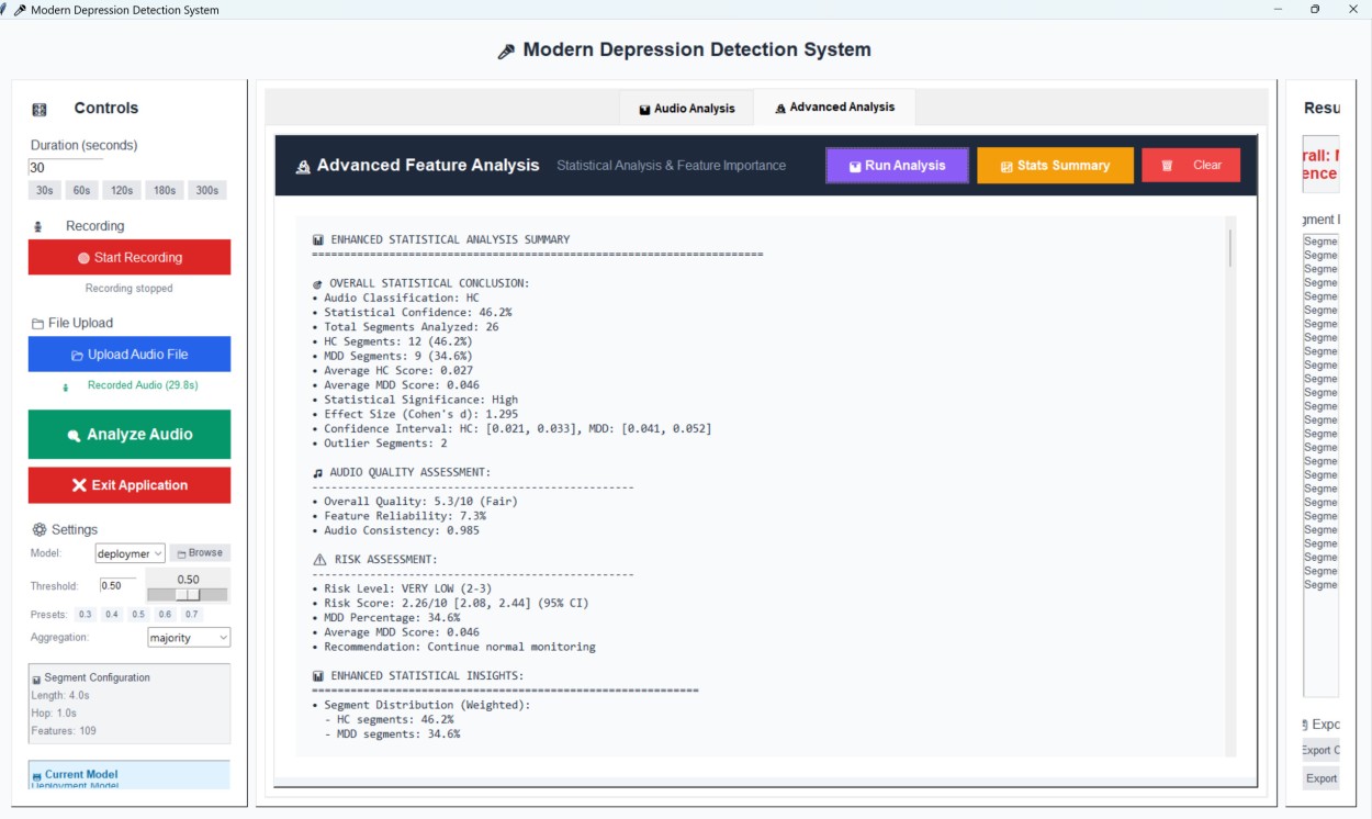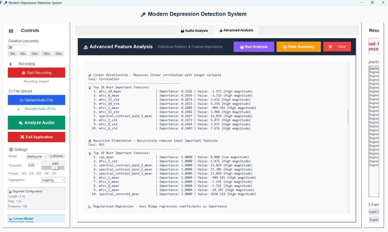 Pavyzdžiui, tyrime nustatyti universalūs biožymenys, tokie kaip sumažėjusi pagrindinio tono dažnio variacija (rodanti monotoniškesnę kalbą), padidėjęs pauzių skaičius ir pakitę tam tikri MFCC koeficientai, apibūdinantys balso spektrines savybes. Šie požymiai iš dalies atspindi psichomotorinį sulėtėjimą ir sumažėjusią balso energiją.