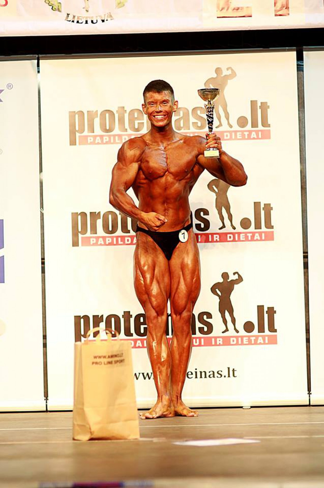 Jaunimo (iki 23 m.) vaikinų kultūrizmo grupėje dar vieną prizinę vietą užėmė „Maximus gym“ atstovas. Antrąją vietą iškovojo Lietuvos sporto universiteto (LSU) pirmo kurso studentas Erikas Aleksandravičius, į priekį praleidęs Europos čempioną iš Šilutės Ovidijų Ringį.
