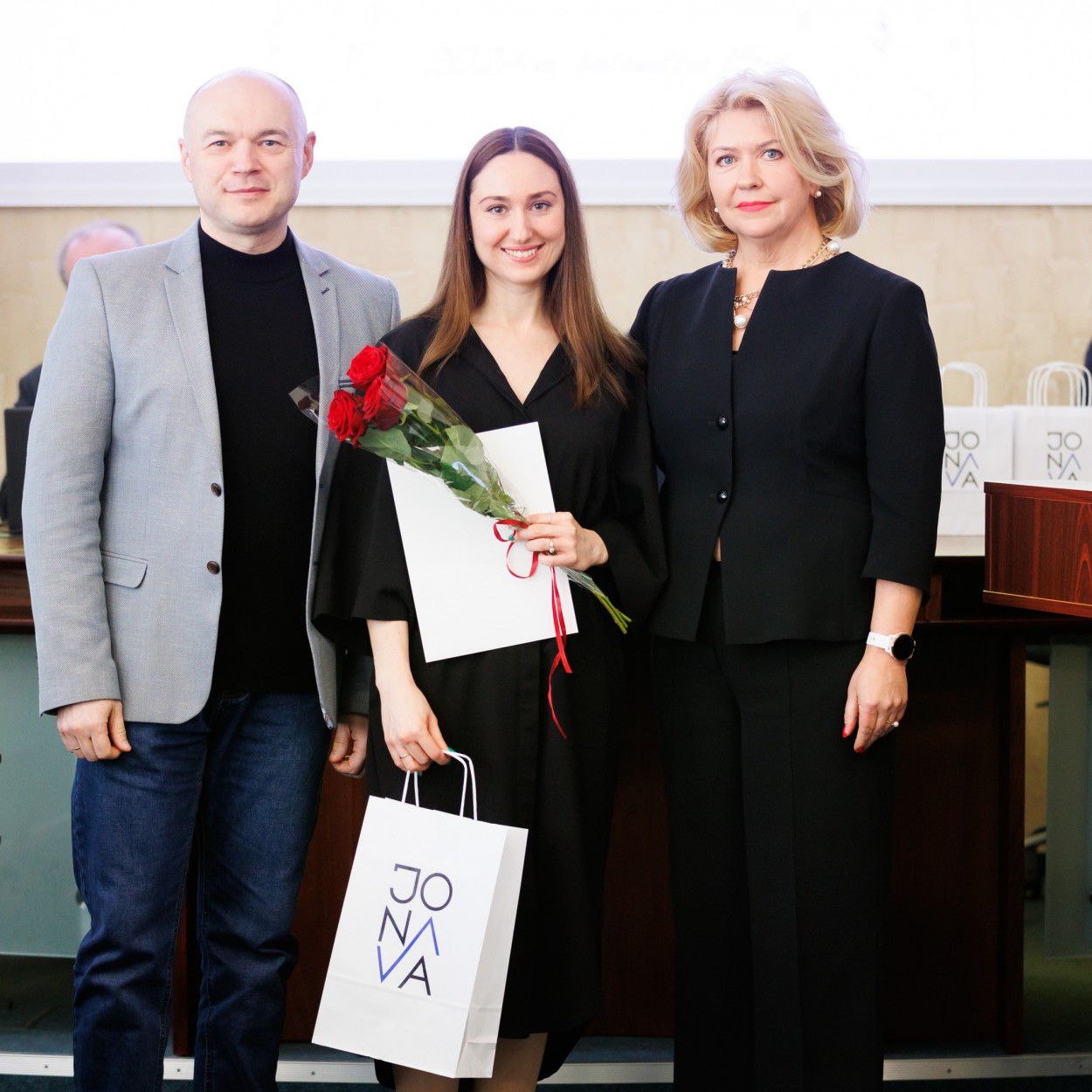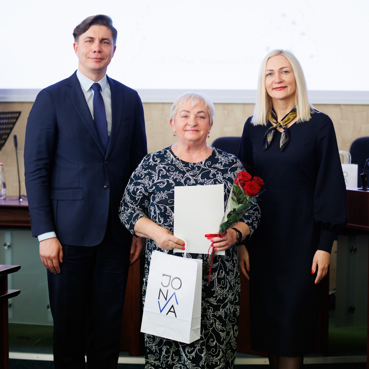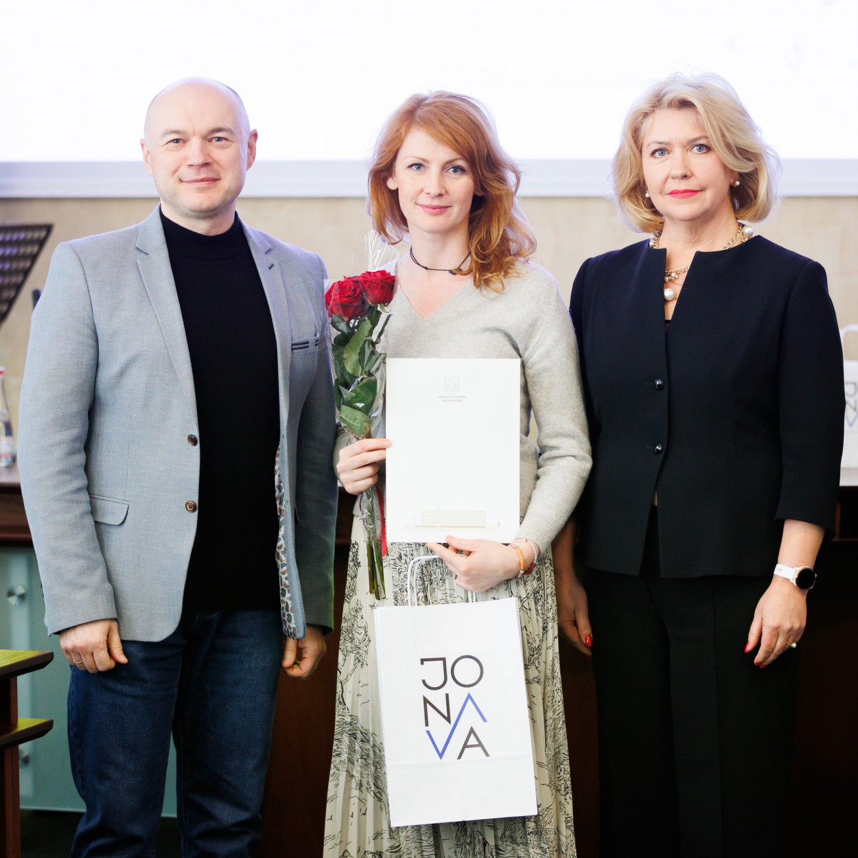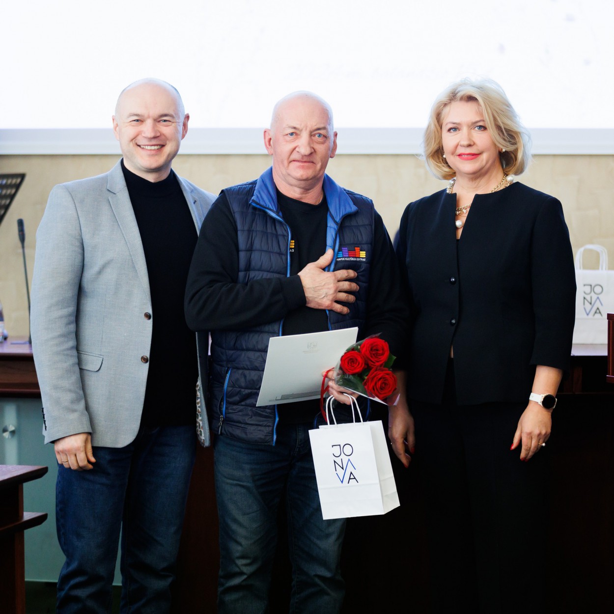 Rajono meras M. Sinkevičius, vicemerė Birutė Gailienė, Švietimo, kultūros, sporto ir jaunimo reikalų komiteto pirmininkė Vijolė Šadauskienė, Seimo narys Eugenijus Sabutis taip pat pasveikino ir apdovanojo Jonavos rajono savivaldybės Kultūros centro (JKC) ir Jonavos rajono savivaldybės Grigorijaus Kanovičiaus viešosios bibliotekos darbuotojus – įvairių nominacijų laureatus.