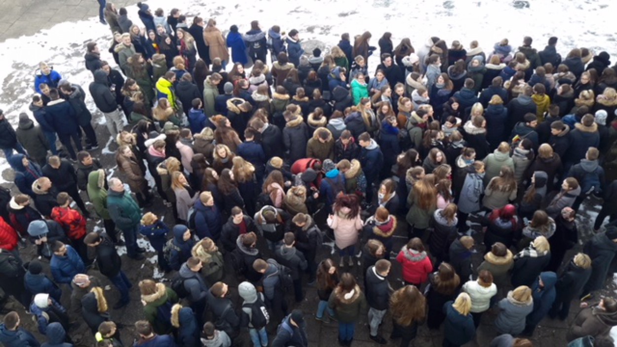 Skambant ,,Tautiškai giesmei" į dangų pakilo istorinė Lietuvos vėliava, 100 trispalvių lėktuvėlių skraidino gimnazistų svajones ir linkėjimus Lietuvai.