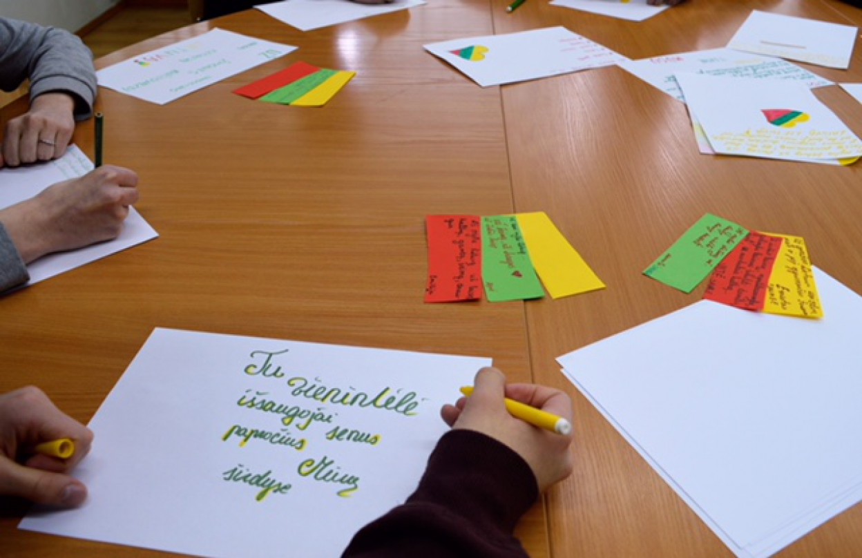 Integruotose istorijos ir tikybos pamokose gimnazistai apžiūrėjo senų spaudinių parodą, pristatė pranešimus ir diskutavo tema: ,,Kuo man brangi Lietuva".
