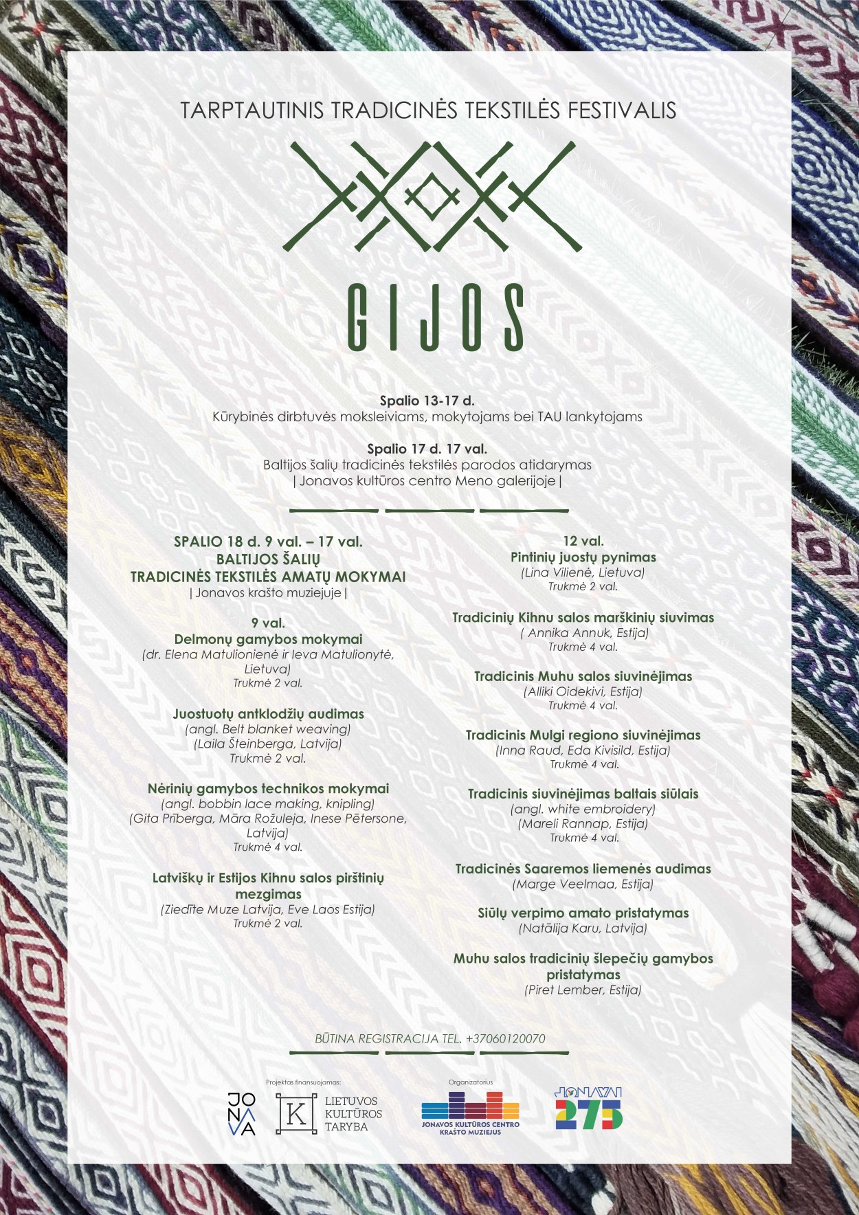 2025 m. spalio 13 - 18 dienomis Jonavoje vyks Tarptautinis tradicinės tekstilės festivalis „Gijos”!