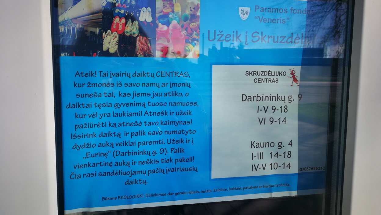 Kai tik prieš kelis metus Jūratė Cvirkienė įkūrė labdaros fondą „Veneris“, jos vizija buvo turėti patalpas su didelėmis erdvėmis, kabinetu žmonėms bendrauti ir dideliu kiemu bagažinių turgeliui. Ilgą laiką besiglaudžiant senose patalpose Darbininkų g. 11, jos darėsi per ankštos, bet kiekviena svajonė gali imti ir išsipildyti.