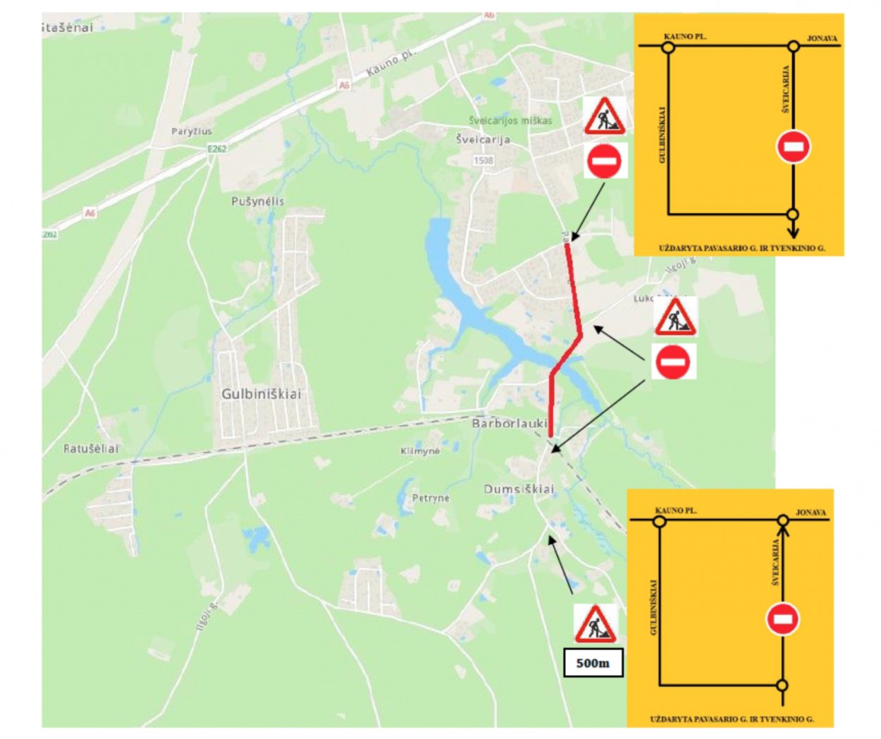 Vietos gyventojai ir pravažiuojantys vairuotojai nebus palikti be sprendimų – sudaryta laikina eismo organizavimo schema, numatanti apylankas per Gulbiniškius, Kauno plentą bei Šveicariją.