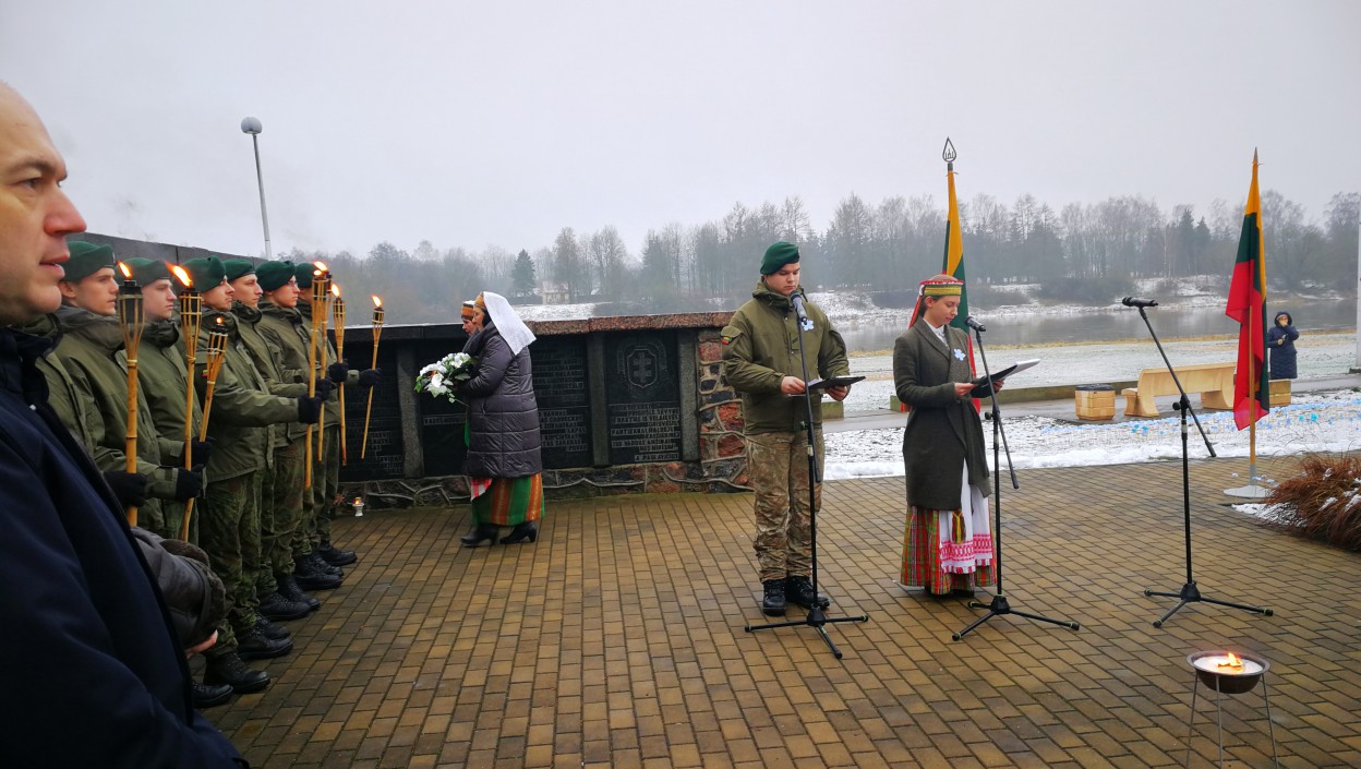 „Ypatinga diena šiandiena. Minime 29-ąsias sausio įvykių metines. Mums, kaip kariuomenės atstovams, tai labai svarbi diena. Prieš 29 metus beginkliai žmonės, kurių buvo daugiatūkstantinė minia, sugebėjo apginti mūsų valstybės interesus ir atstovėti prieš gerai ginkluotą priešą, tačiau teko paaukoti 14 gyvybių. 29 metai – nelabai didelis laiko tarpas žmonijos istorijoje, bet turim apie tai prisiminti, nepamiršti, pasakoti mūsų jaunajai kartai, ugdyti pilietiškumą ir patriotiškumą. Ta pergalė yra Lietuvos žmonių pergalė, Lietuvos valstybės pergalė prieš agresorių“, - minėjimo metu šnekėjo Kunigaikščio Vaidoto mechanizuotojo pėstininkų bataliono vadas plk. ltn. Artūras Purlys.