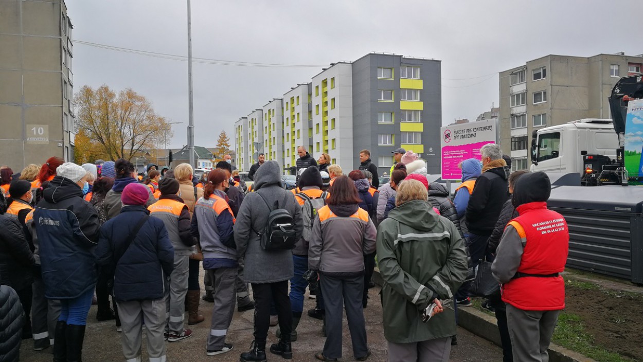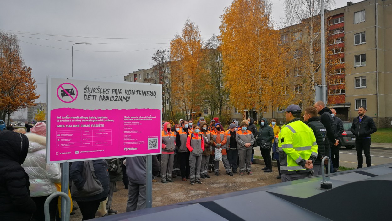 Šiandien A. Kulviečio gatvės gyventojams bei praeiviams teko stebėti neįprastą reginį – nemenką būrį žmonių, susirinkusiųjų ties bendro naudojimo konteinerių aikštele prie A.Kulviečio g. 1 ir 5 daugiabučių namų. Smalsuolių dėmesį traukė bei vairuotojų automobilių signalizavimo sulaukė susibūrimo dalyviai, kurių puse jų buvo su ryškiaspalvėmis „Jonavos paslaugų“ liemenėmis. Skubame pranešti, kad tai nebuvo piketo ar streiko akcija, kaip galėjo pamanyti miestiečiai.